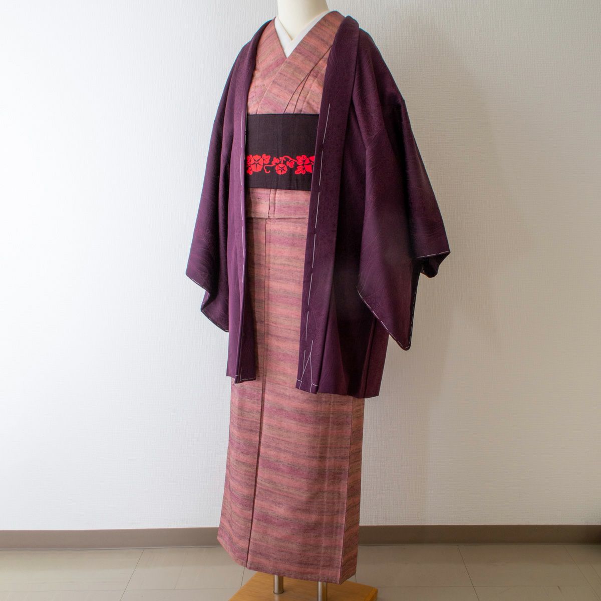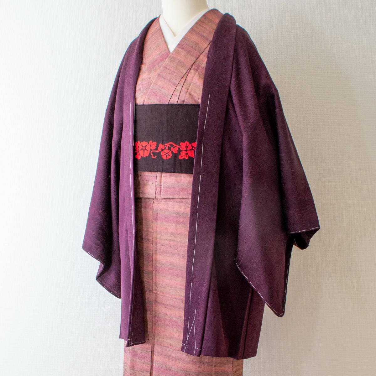 【美品】羽織 立涌重ね 紋意匠 紫紺 無地 正絹 袷 身丈:約78cm 裄:約65cm
