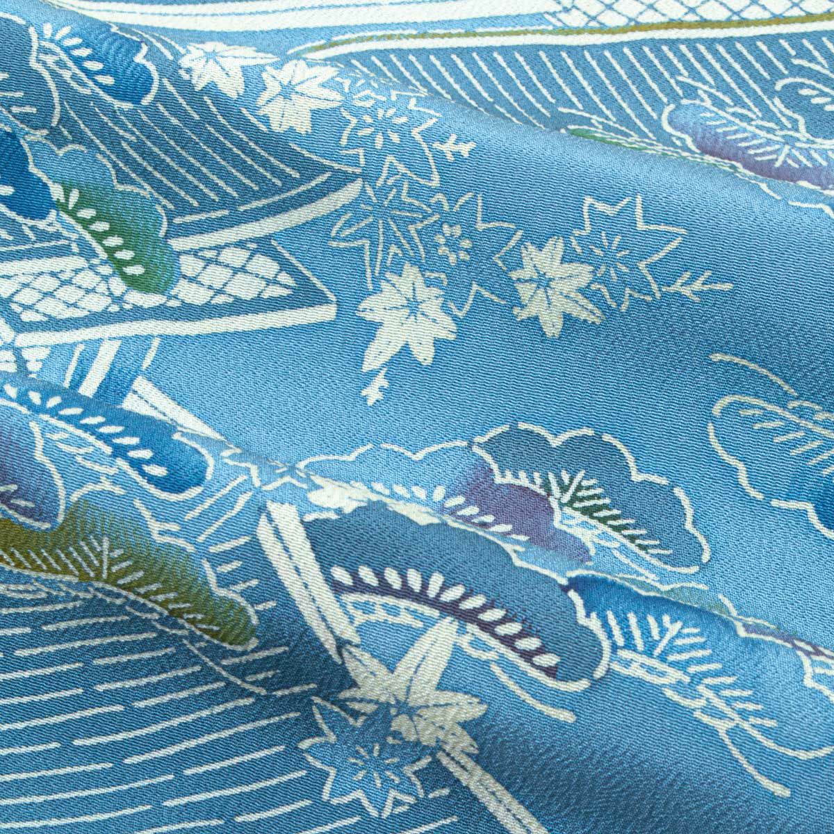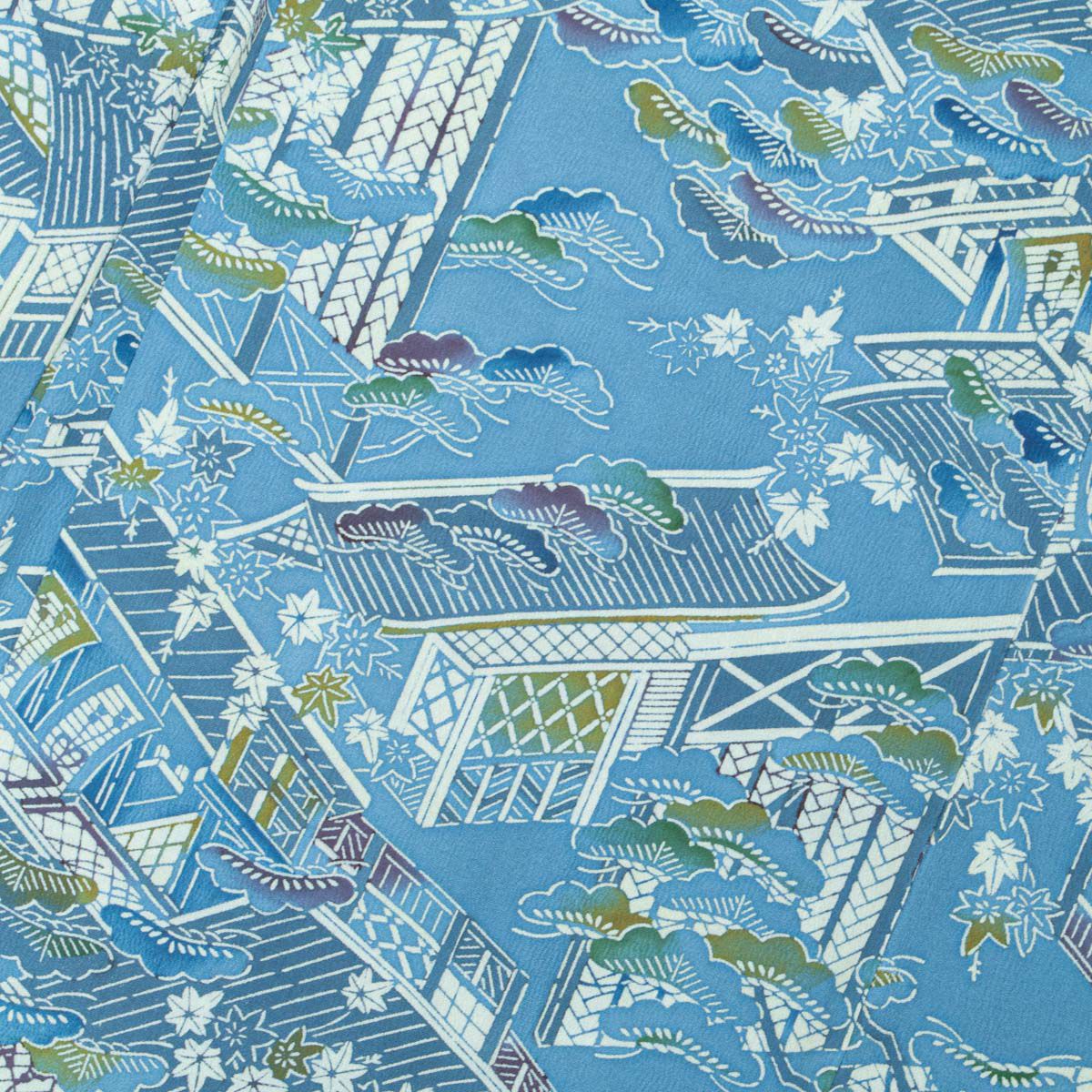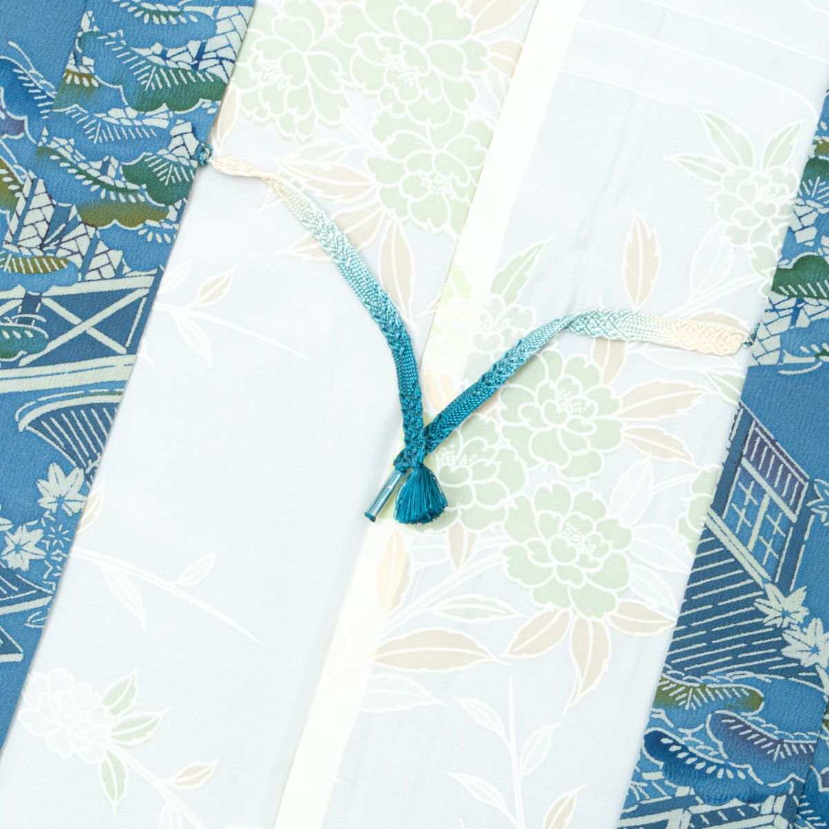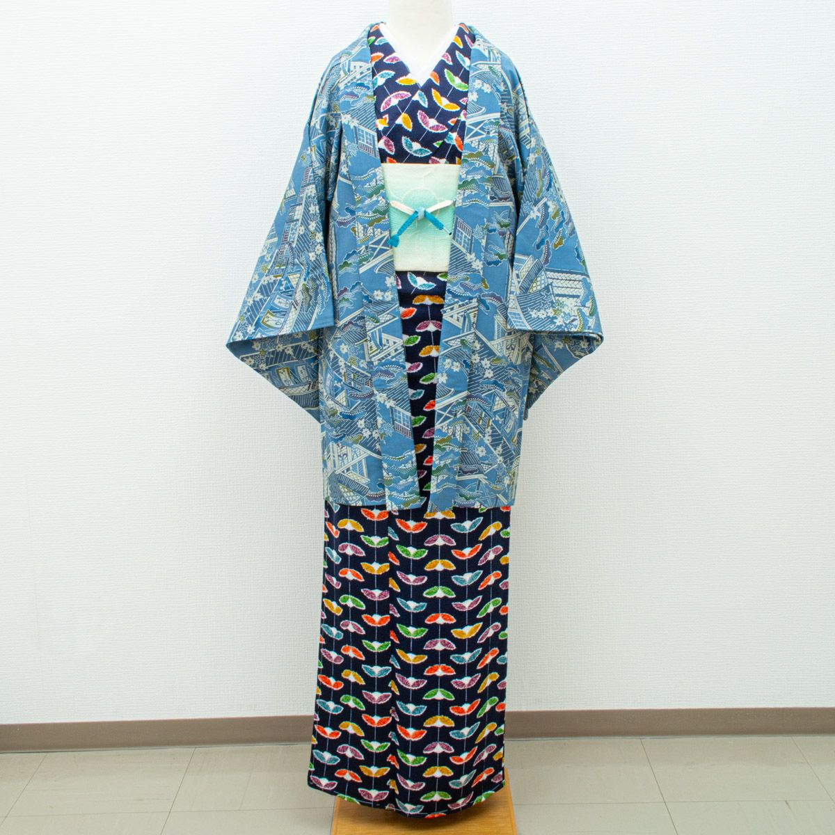 羽織 型友禅 江戸解き文様 青 羽織紐付き 正絹 袷 身丈:約79cm 裄:約64.5cm