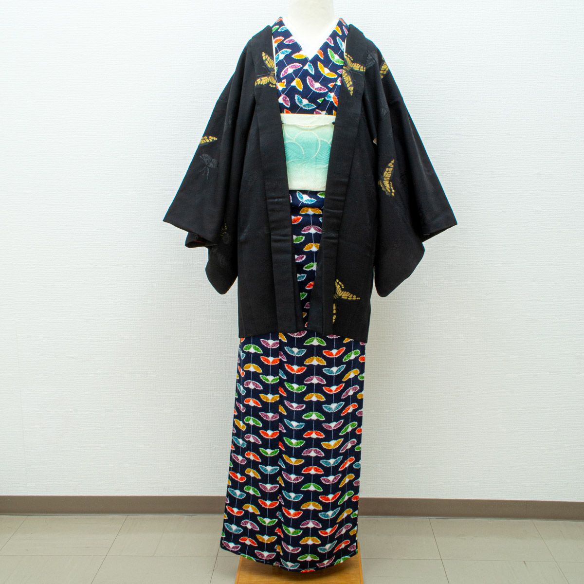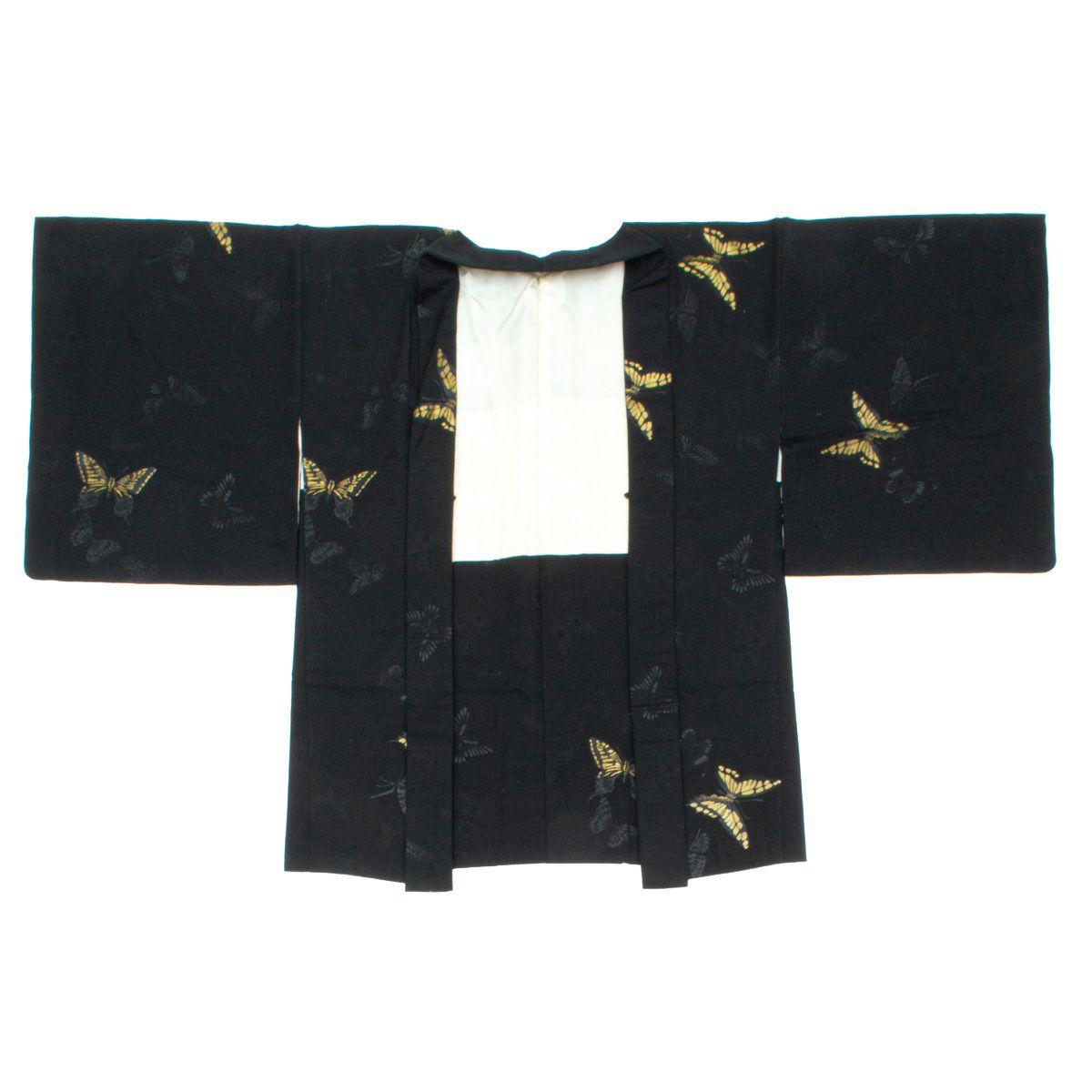 【銀座きしや】羽織 胡蝶 紋意匠 金銀糸 黒 正絹 袷 身丈:約76cm 裄:約64cm