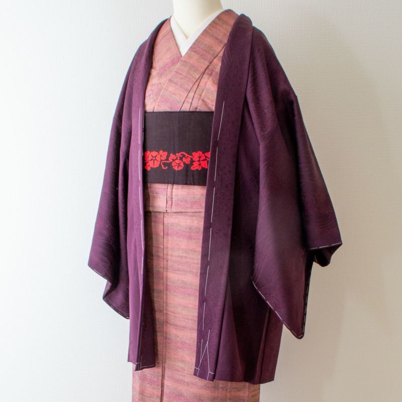 しっとりとした光沢感と深みのある色合いが美しい、紫紺色の羽織です。