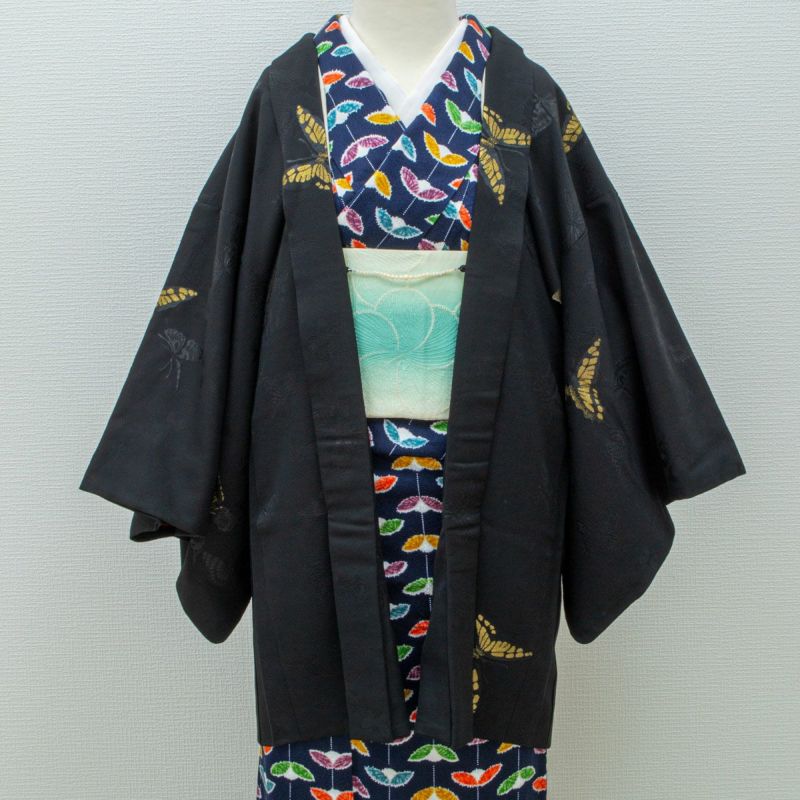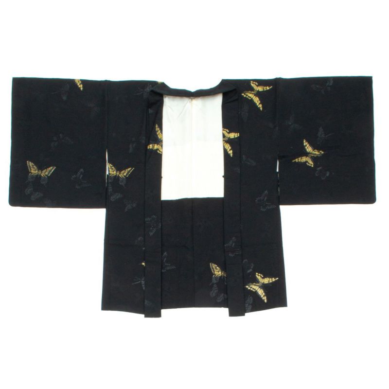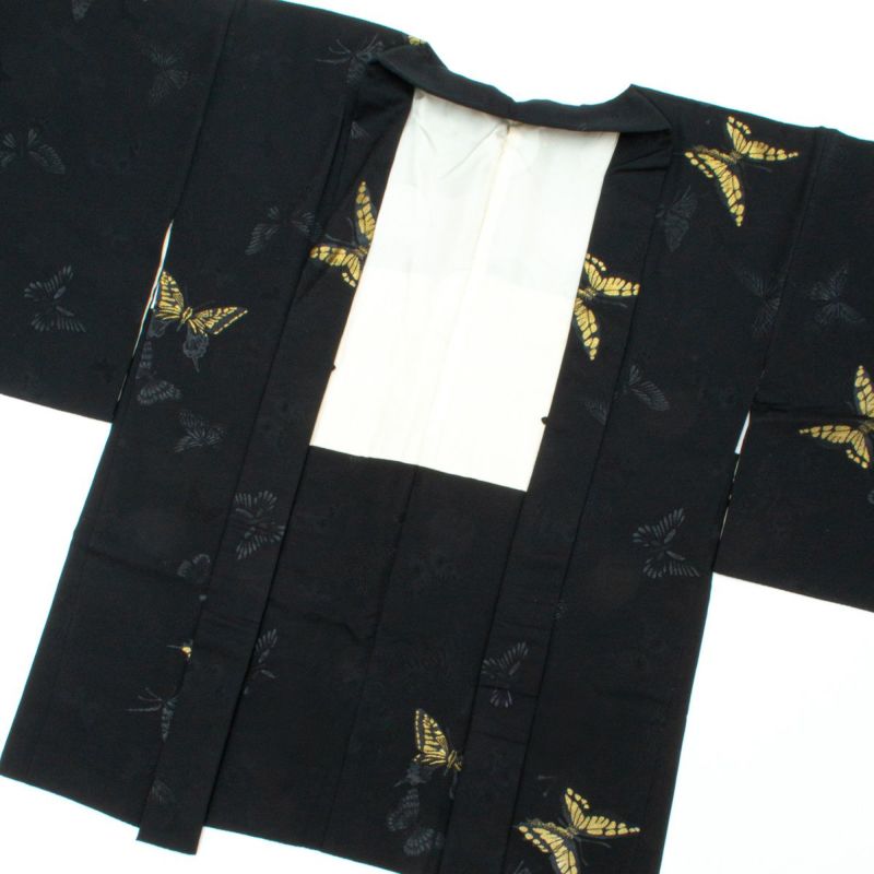 【銀座きしや】羽織 胡蝶 紋意匠 金銀糸 黒 正絹 袷です。