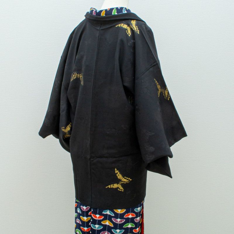 【銀座きしや】羽織 胡蝶 紋意匠 金銀糸 黒 正絹 袷 身丈:約76cm 裄:約64cm