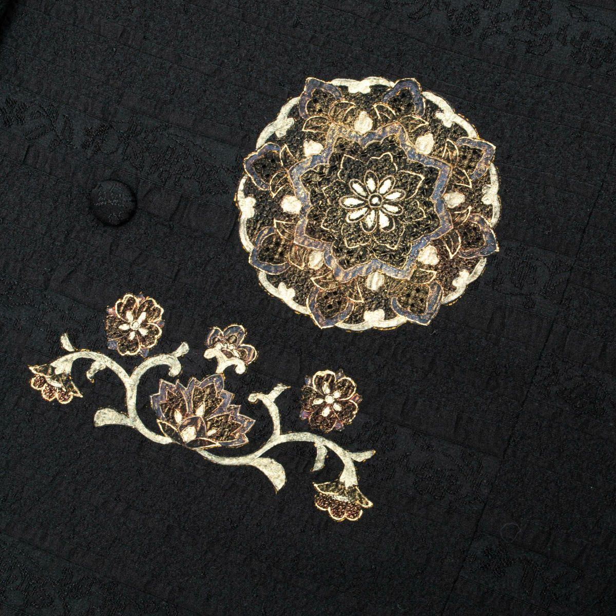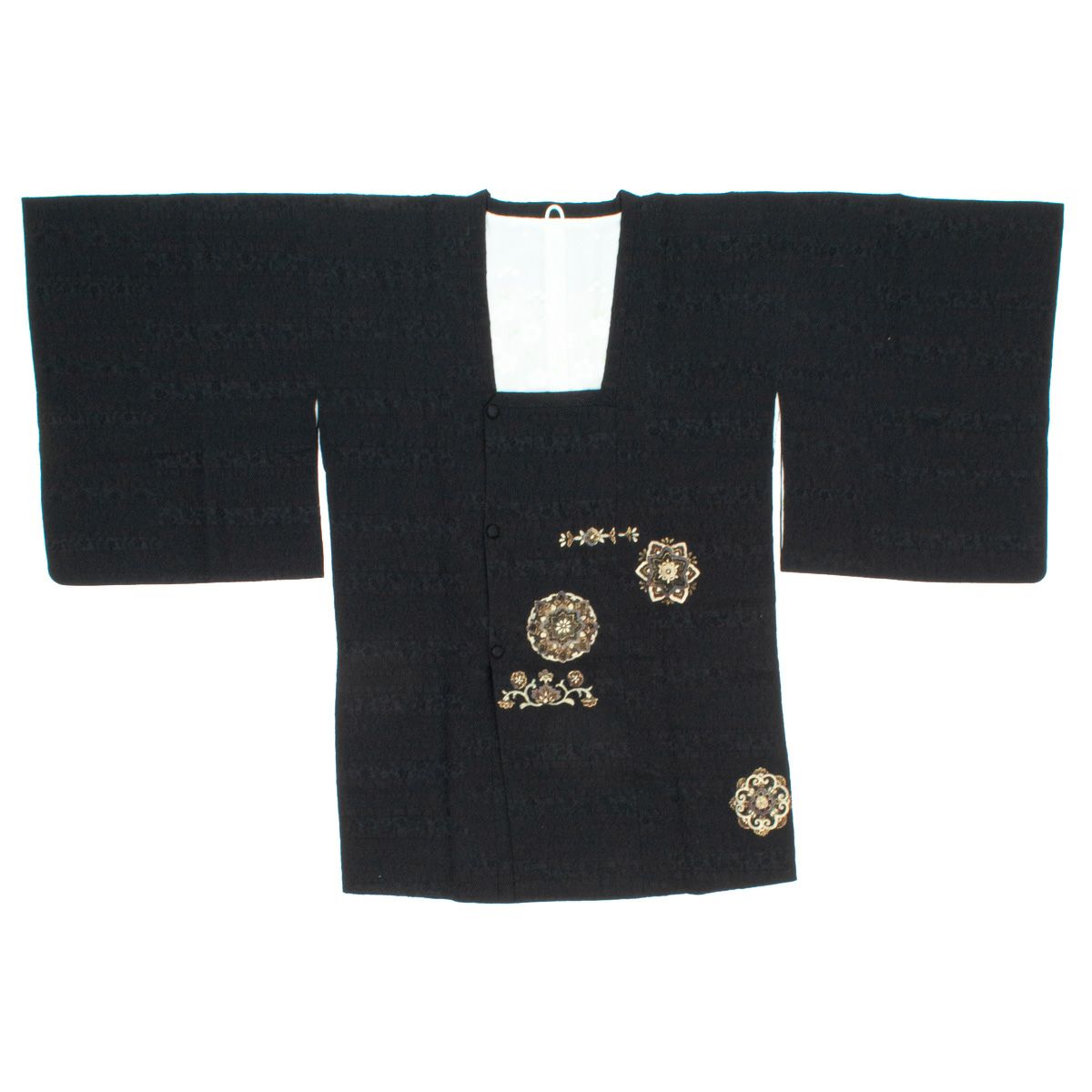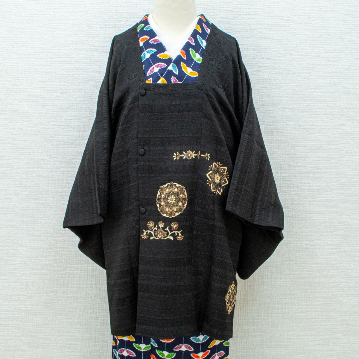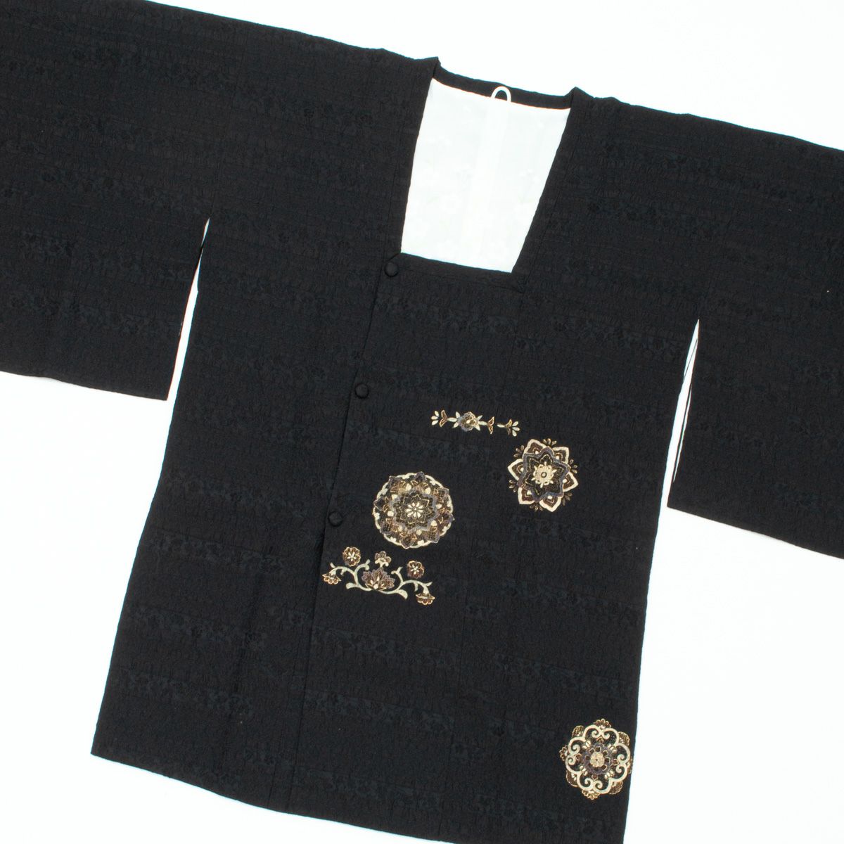 他の画像を見る 【美品】道行き 膨れ織 紋意匠 汕頭刺繍 唐花紋 金彩 黒 正絹 袷 身丈:約81cm 裄:約63.5cm 当店特別価格 ¥ 9,900 税込 SOLD OUT 詳細を見る お気に入りに登録する