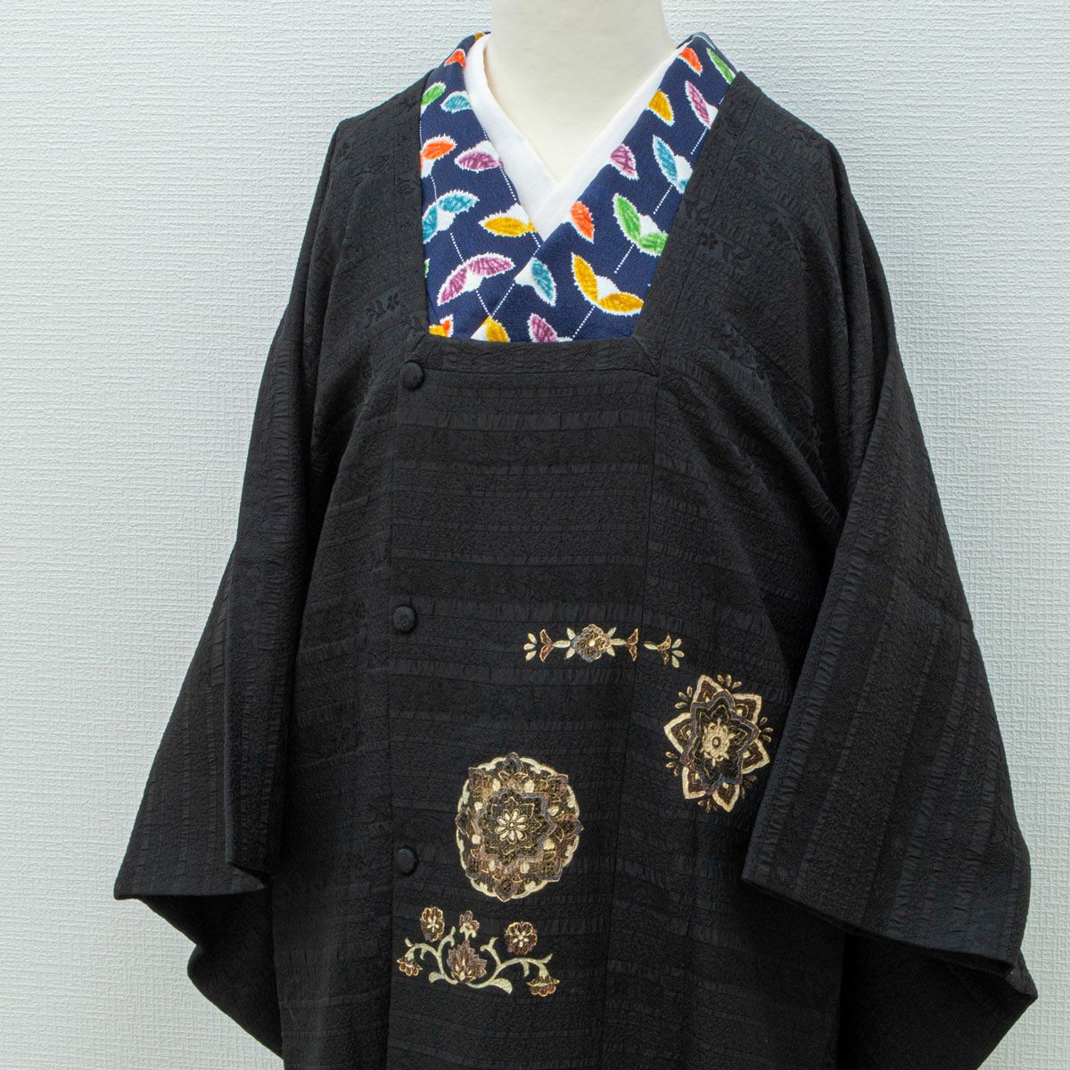 他の画像を見る 道行きコート ビロード ボタニカル文 黒 道行衿 正絹 袷 身丈:約121cm 裄:約68.5cm 当店特別価格 ¥ 16,500 税込 SOLD OUT 詳細を見る お気に入りに登録する