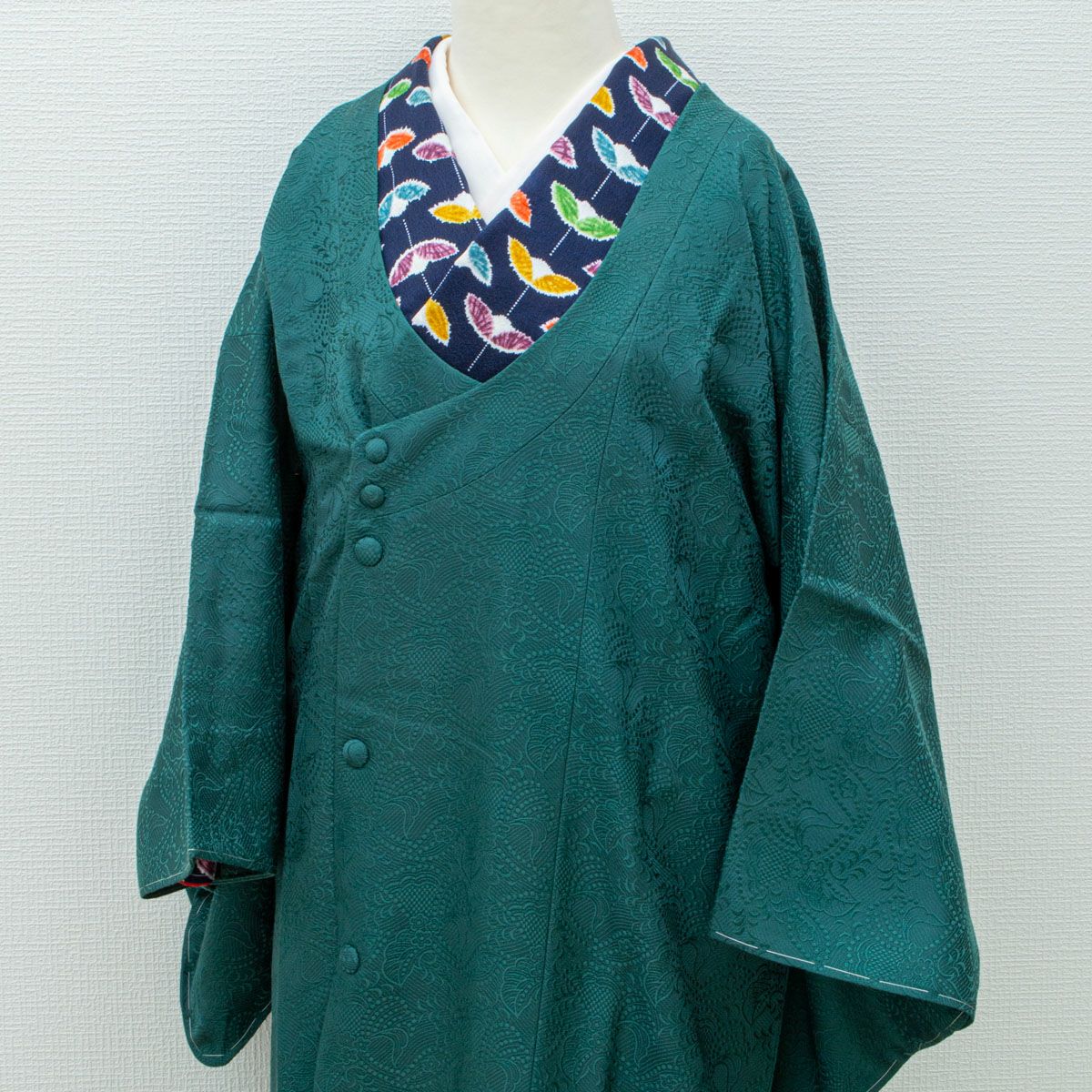 他の画像を見る 【美品】道行き 花唐草 紋意匠 緑 無地 千代田衿 正絹 袷 身丈:約124cm 裄:約67.5cm 当店特別価格 ¥ 22,000 税込 SOLD OUT 詳細を見る お気に入りに登録する