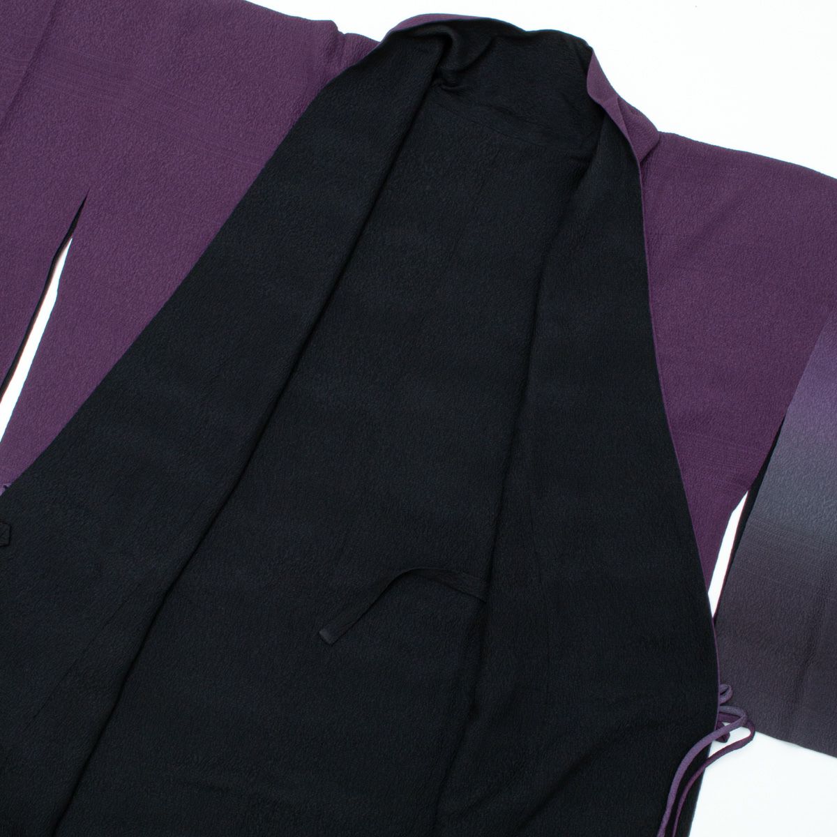他の画像を見る 【美品】道中着 暈し染め 紫 グラデーション ちりめん 紋意匠 道中着衿 リバーシブル 黒 正絹 袷 身丈:約101cm 裄:約69cm 当店特別価格 ¥ 19,800 税込 SOLD OUT 詳細を見る お気に入りに登録する