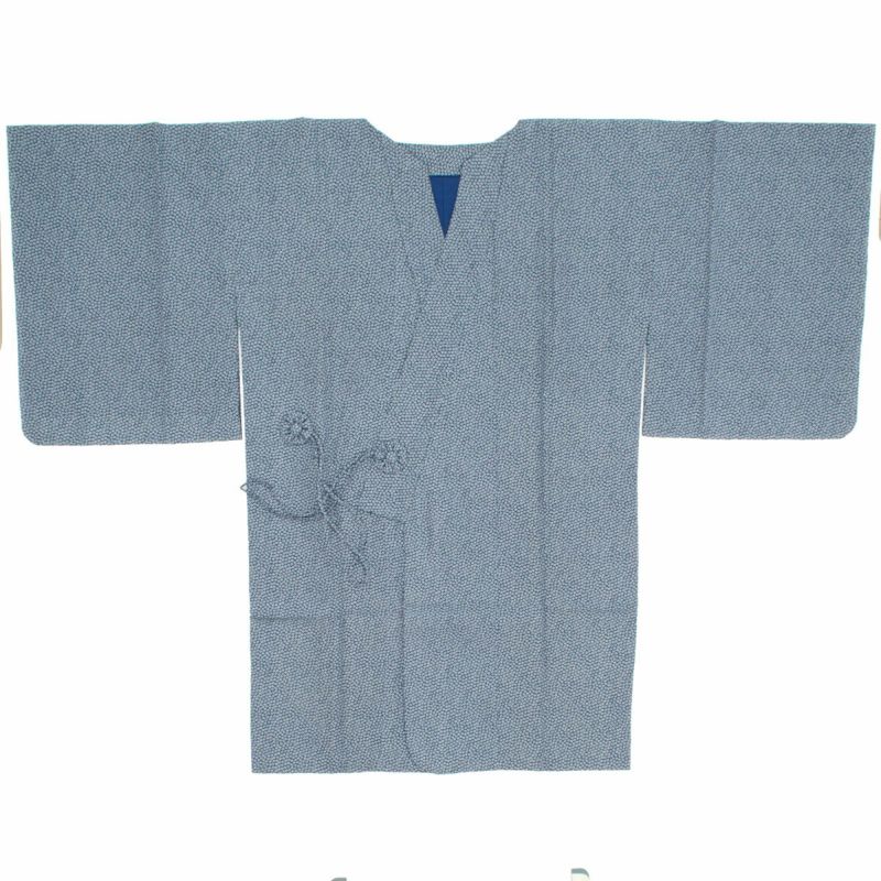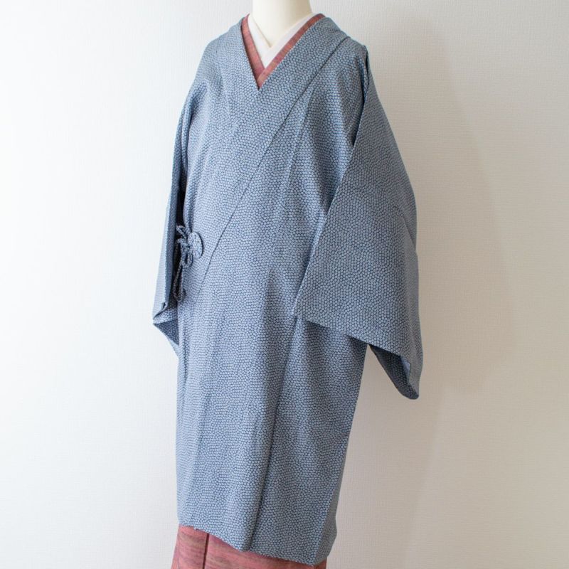 【美品】 道中着 小紋柄 小花 青 きもの衿 正絹 袷 身丈:約98cm 裄:約67cm