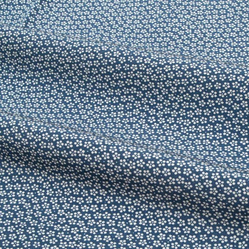清涼感のある青地に、白の小花が密に散りばめられ、上品でやさしい印象を演出します。