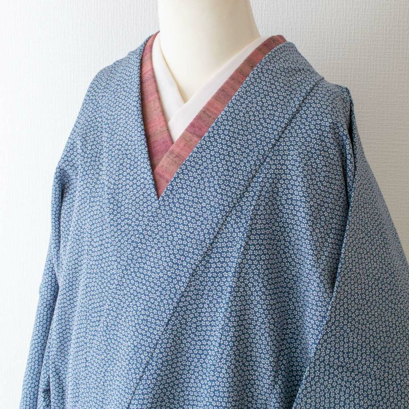 【美品】 道中着 小紋柄 小花 青 きもの衿 正絹 袷です。