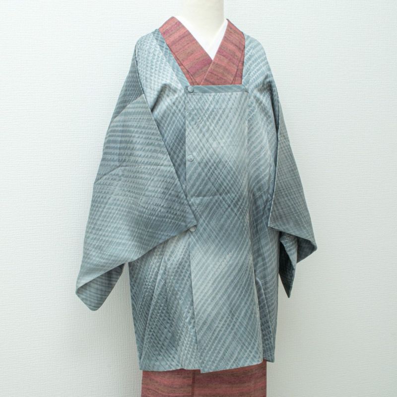 【斎藤三才】道行き 友禅 彩格子 湊鼠 濃淡グラデーション 正絹 袷です。