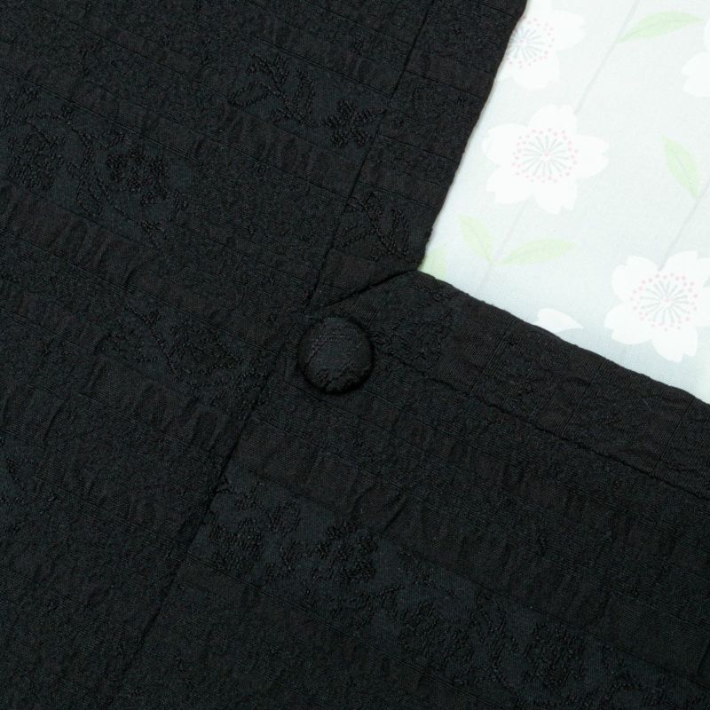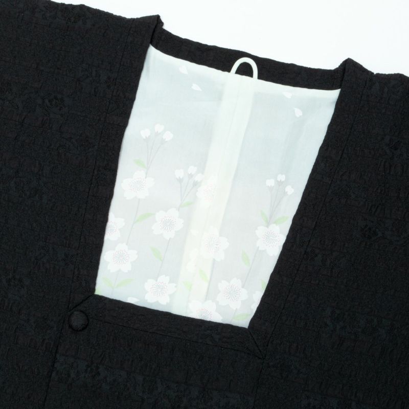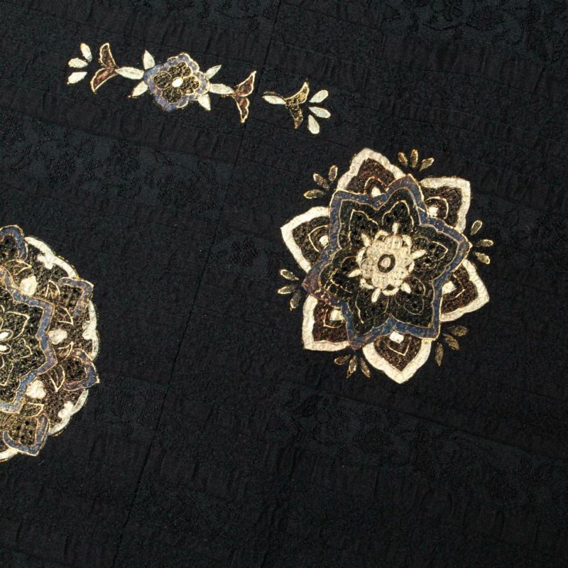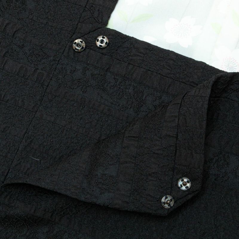 黒地には、繊細な紋意匠が織り出されており、上品な光沢と奥行きのある風合いが特徴です。