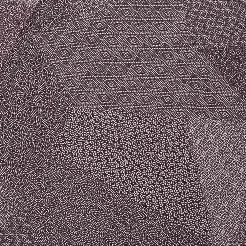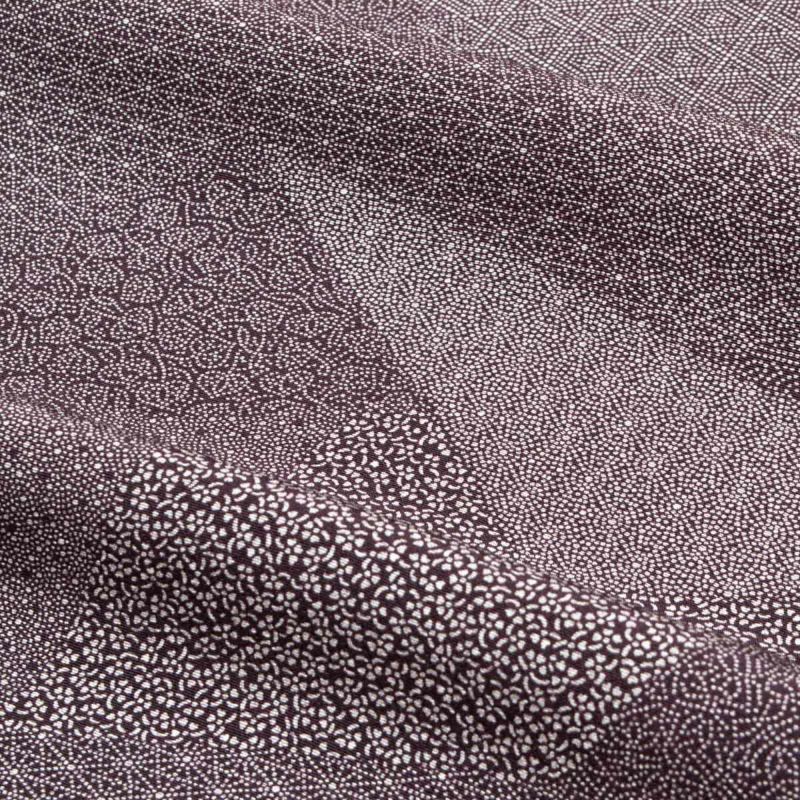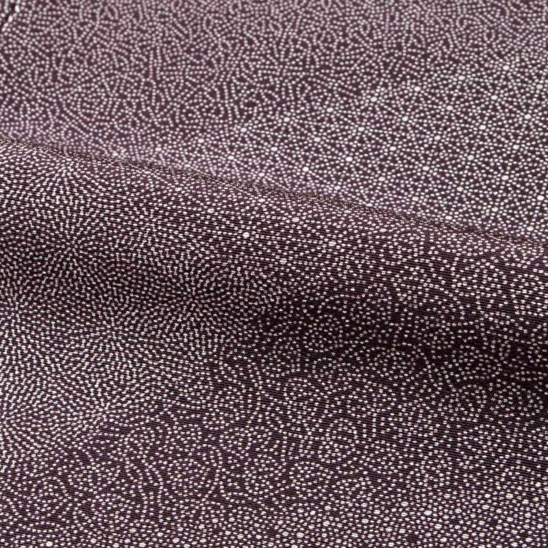 落ち着いた紫鳶色の地に、職人の技術が冴える細やかな染めが際立ち、渋さと華やぎをあわせ持った佇まい。