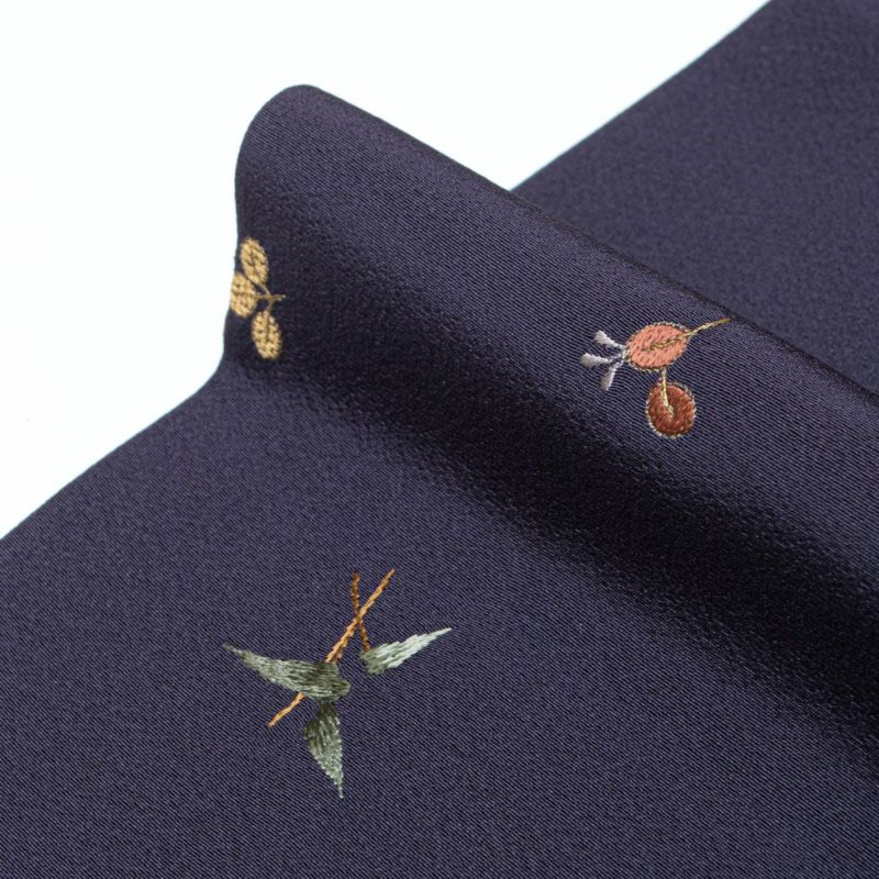 落ち着いた地色が刺繍の彩りを引き立て、静かに気品を放ちます。
