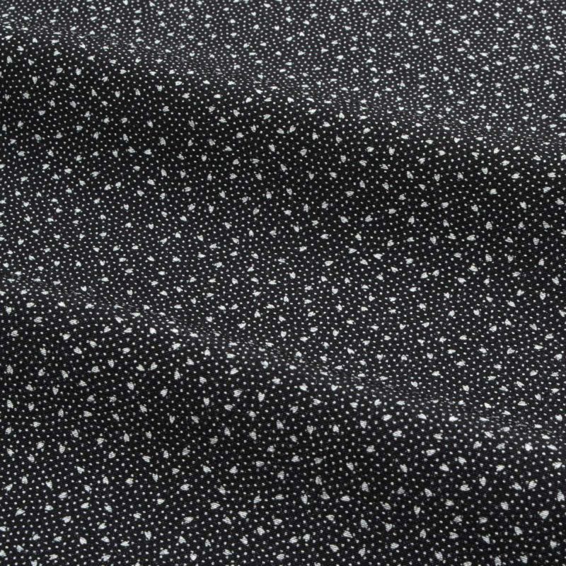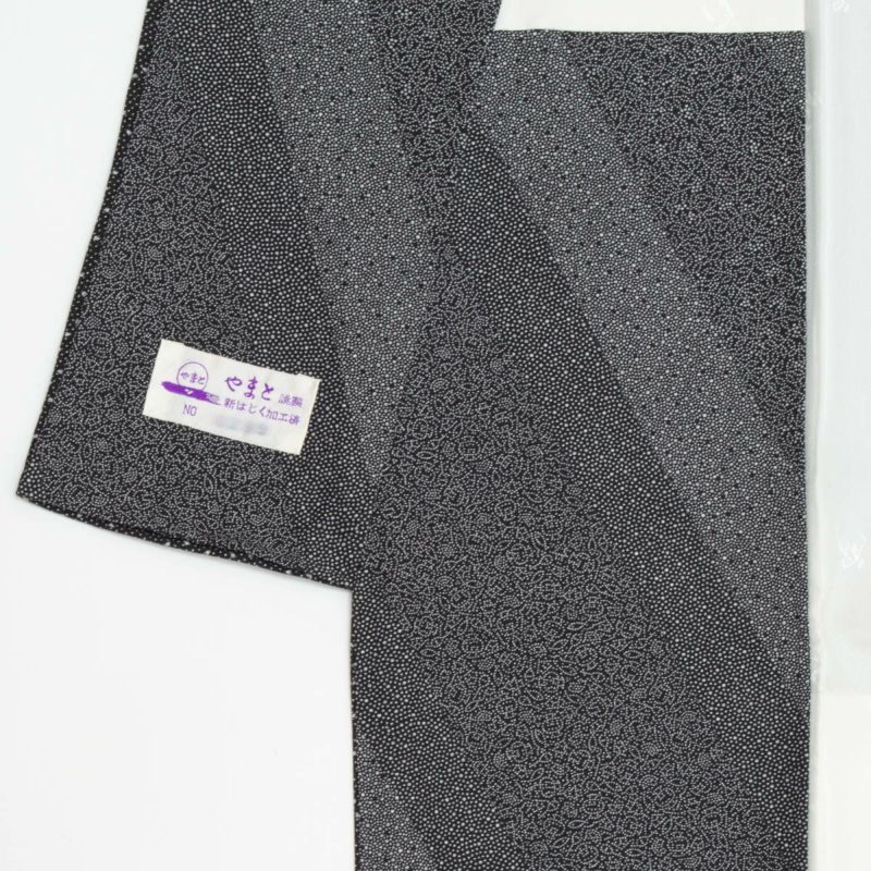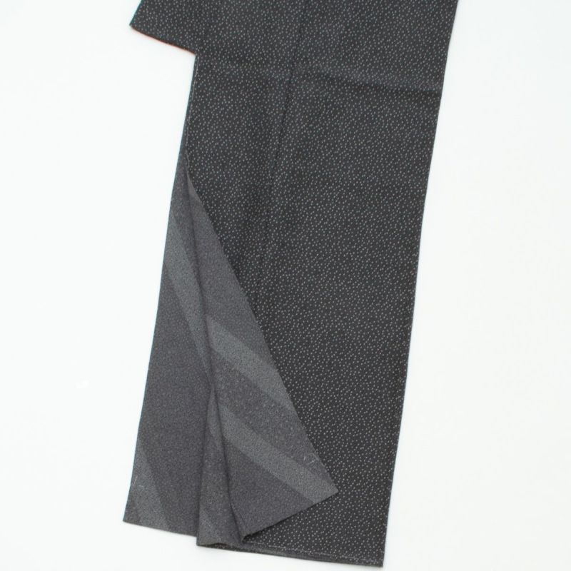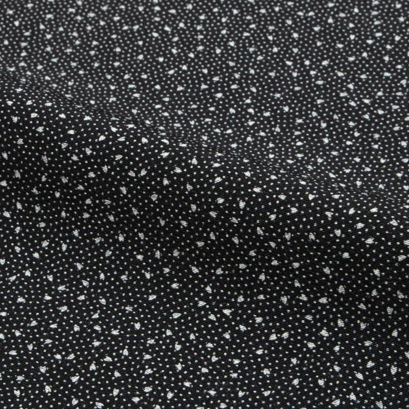 地色は黒に近い深い濃色で、白の極小文様が映える洗練された印象。落ち着いた中にも華やかさを感じる、粋な装いを演出します。