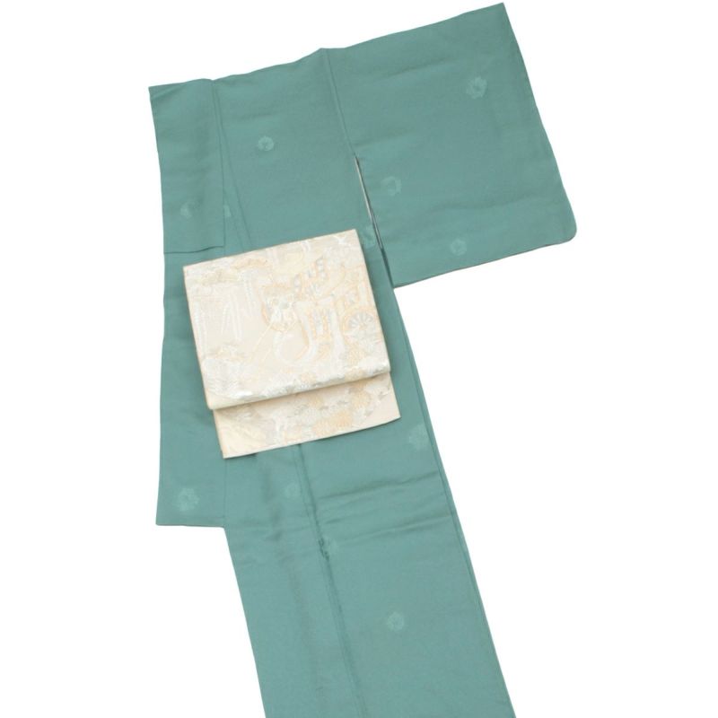 色無地 花丸文 紋意匠 青磁色 縫い一つ紋 正絹 袷 身丈:約154cm 裄:約65cm