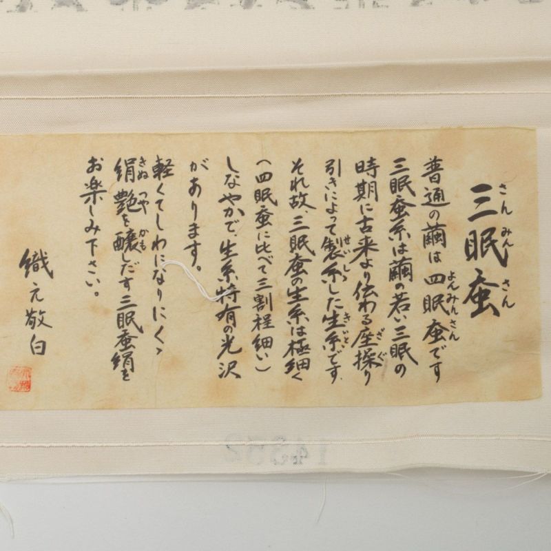 若繭を座繰引きで丁寧に製糸した極細の生糸「三眠蚕(さんみんさん)」を使用して丁寧に織り上げた上質な紬地の訪問着です。