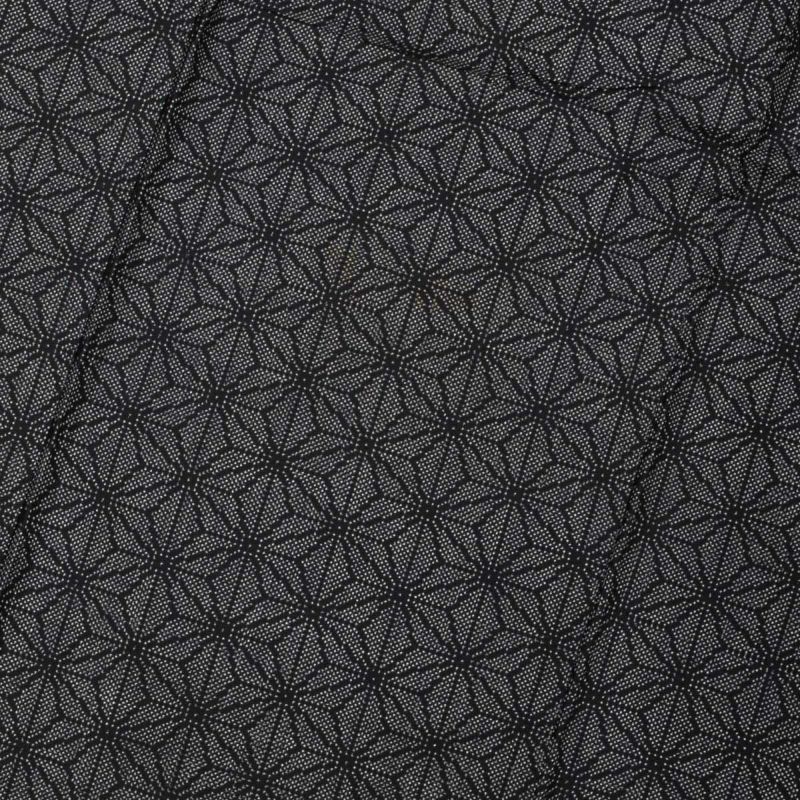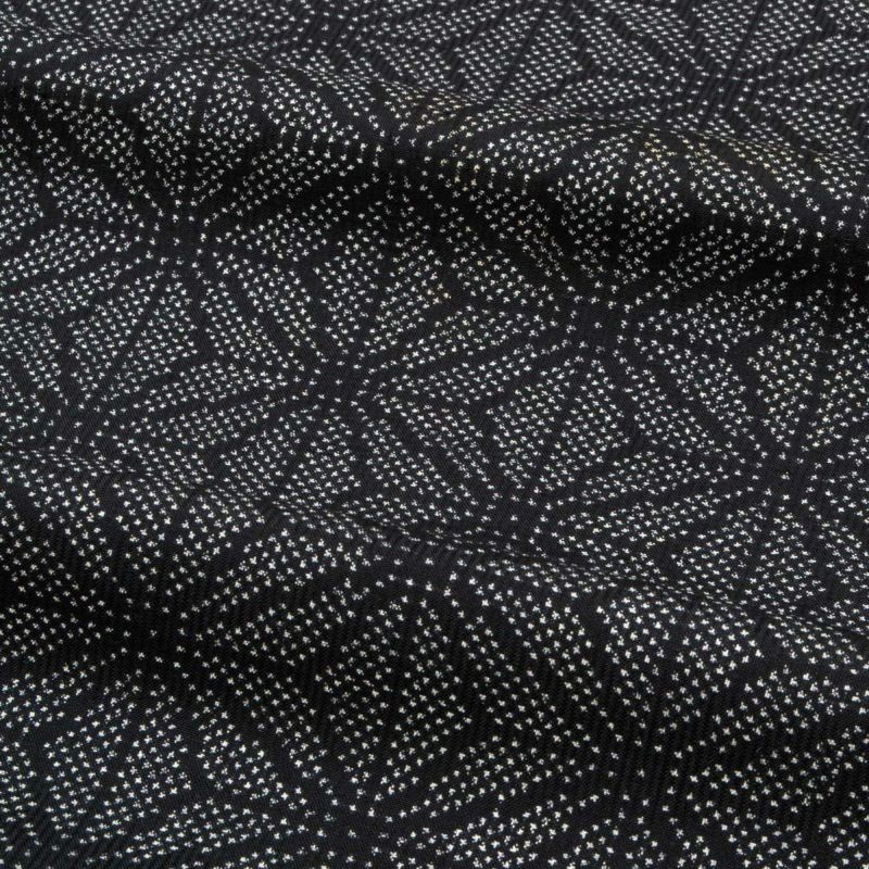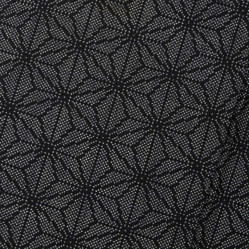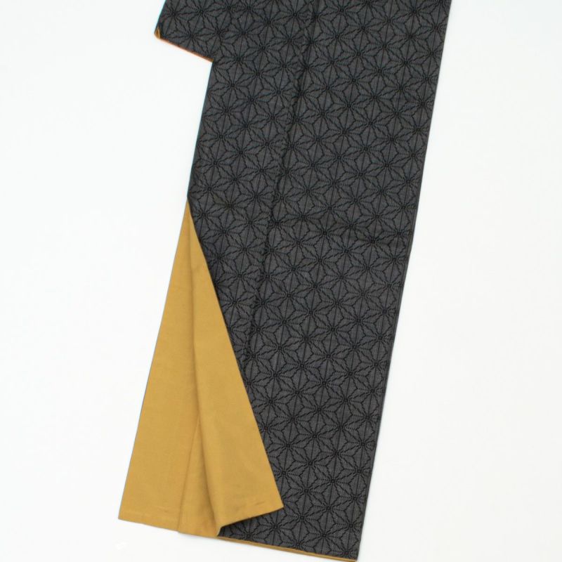 黒地に白の繊細な麻の葉繋ぎ文様が、端正で洗練された印象を与えます。