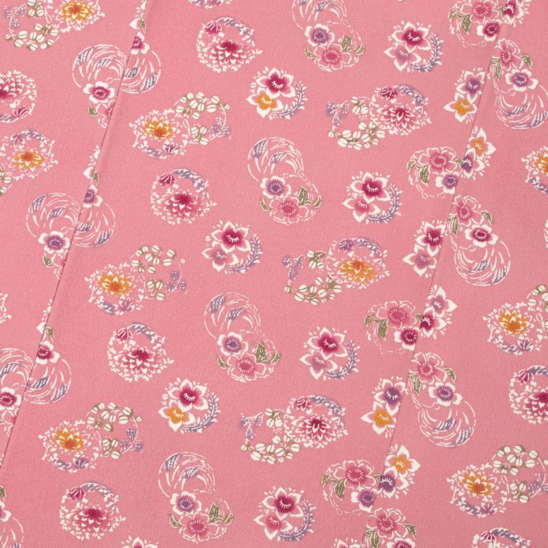 華やかでありながら落ち着きも感じさせる、縮緬地の型染め小紋です。