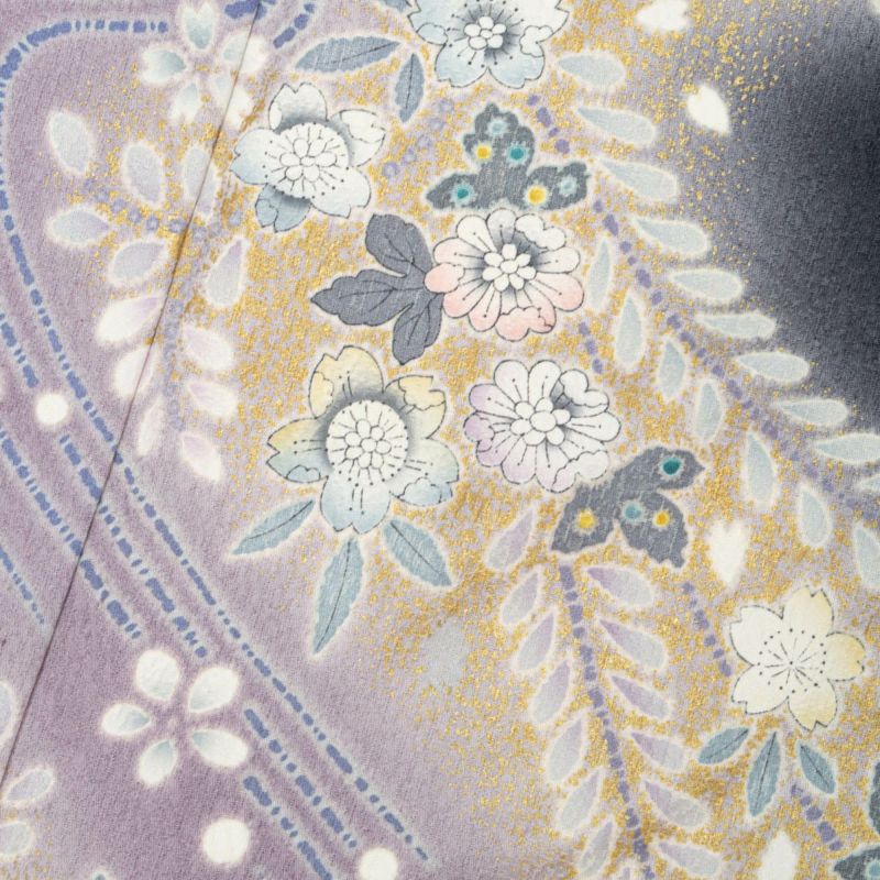 友禅ならではの繊細な描写と金彩が、美しい暈し染めと相まって、しっとりとした女性らしさと上質感を醸し出します。