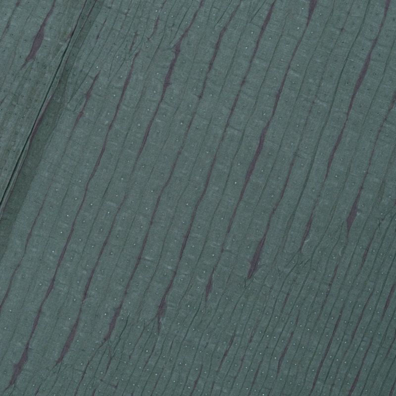 ややくすんだ青碧地にほんのり浮かぶ黒の絞りが、クラシカルかつ現代的な印象を醸し出します。