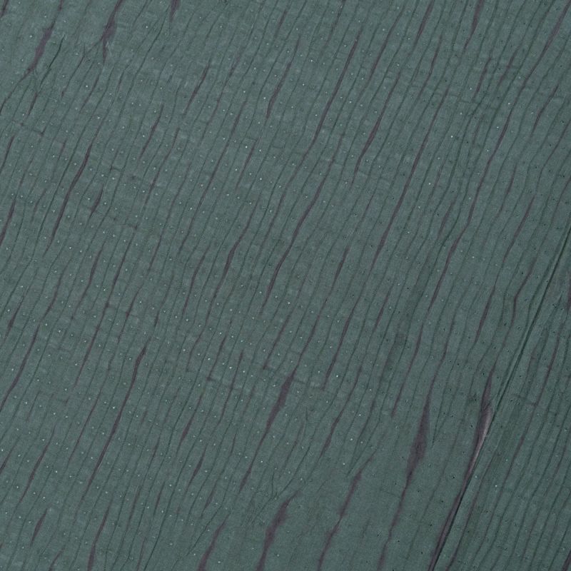 深い青碧(せいへき)色に黒の絞りが縦に流れる、モダンな趣のある総絞りの紬です。