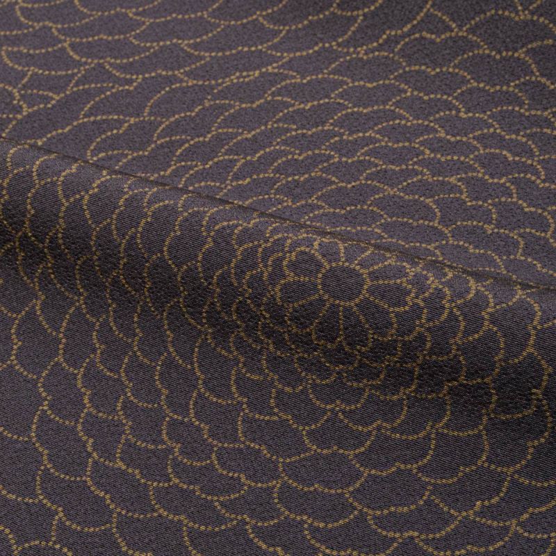 落ち着いた色調に細密な文様がほどこされているため、帯合わせ次第で上品にもモダンにも表情を変えられる一枚。年齢を問わず長くご愛用いただけます。