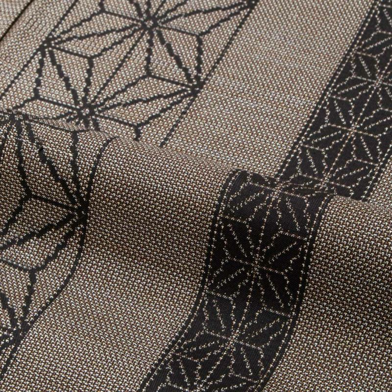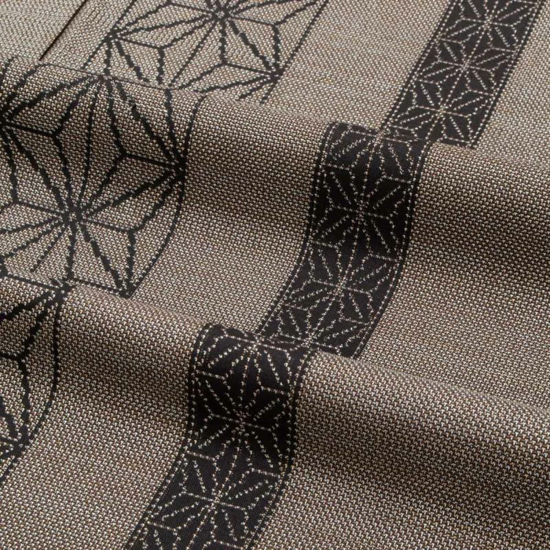 細やかな絣であらわされた麻の葉繋ぎ文が縞状に連なり、端正な表情をつくり出しています。
