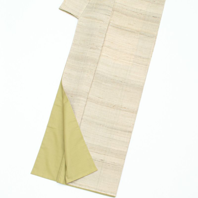 節のあるタッサーならではのナチュラルな風合いと、さらりとした質感が魅力。無地感覚で着回しやすく、帯合わせによって表情が軽やかにも、きちんとした雰囲気にも整います。