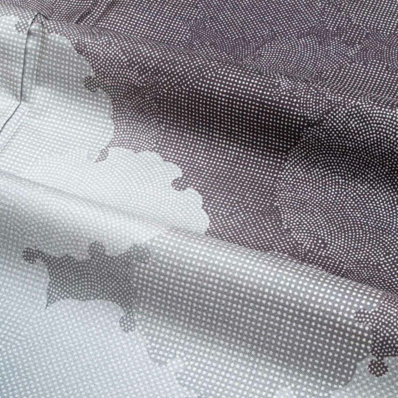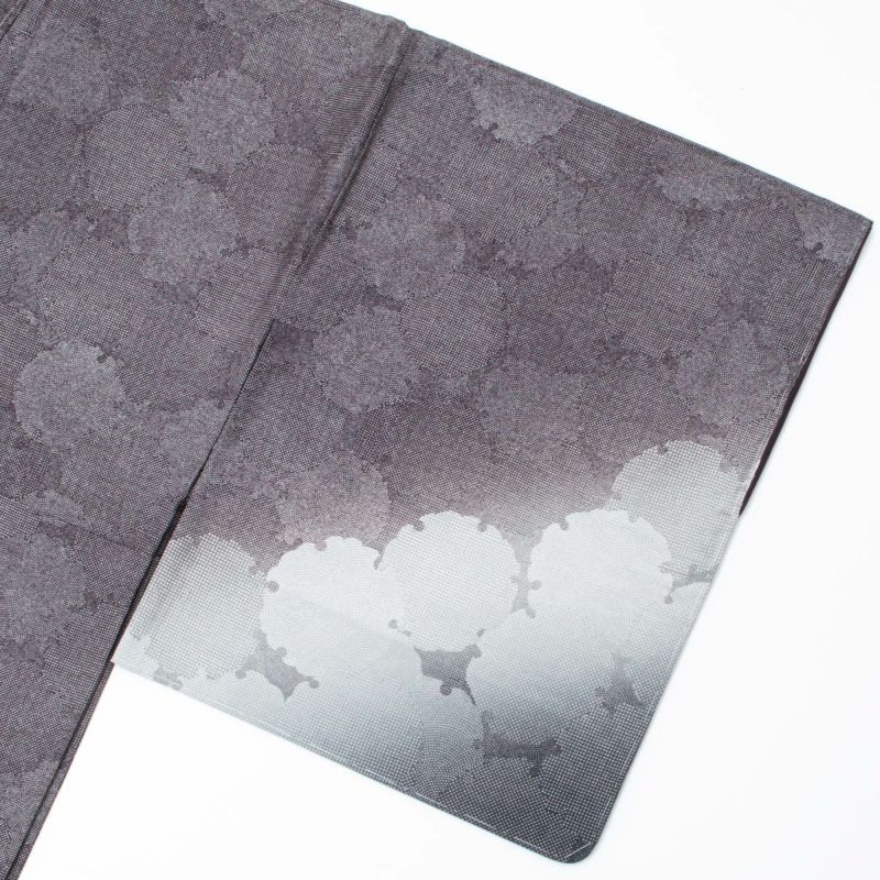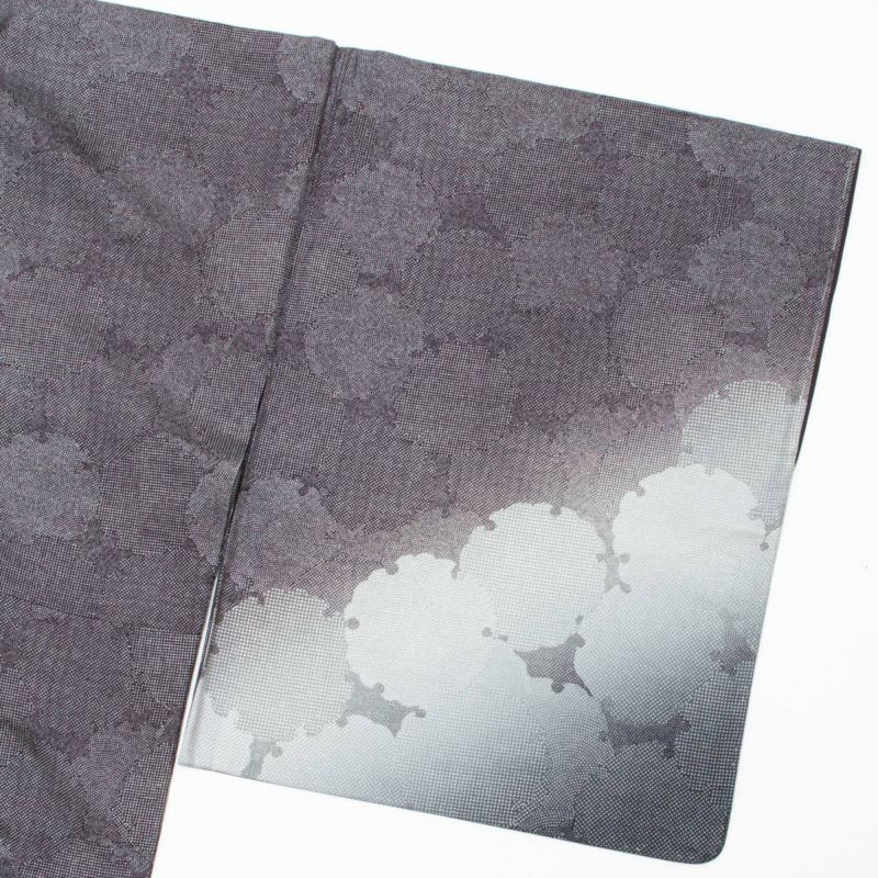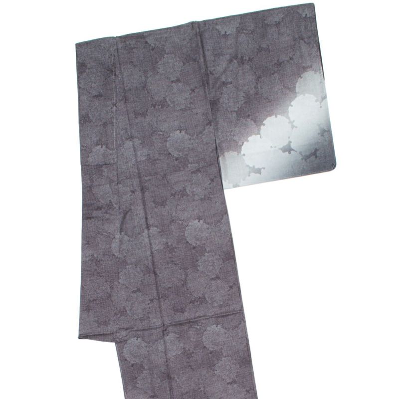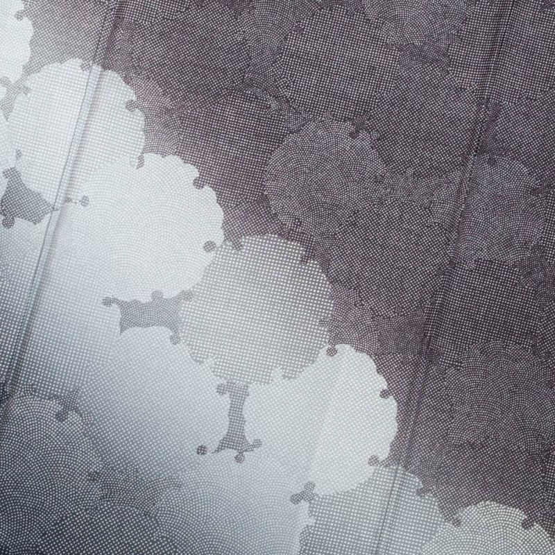 裾にかけてやわらかく広がる暈し染めが、歩くたびにふわりと漂う陰影をつくり、控えめながらも印象に残る佇まい。主張しすぎないモノトーンの洒落感が、大人の女性にぴったりの雰囲気です。