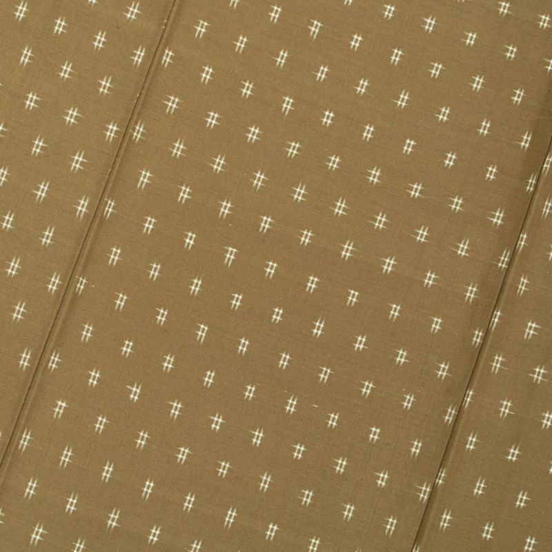 落ち着いた黄枯茶色を地色に、素朴な井桁絣があしらわれた紬のお品です。