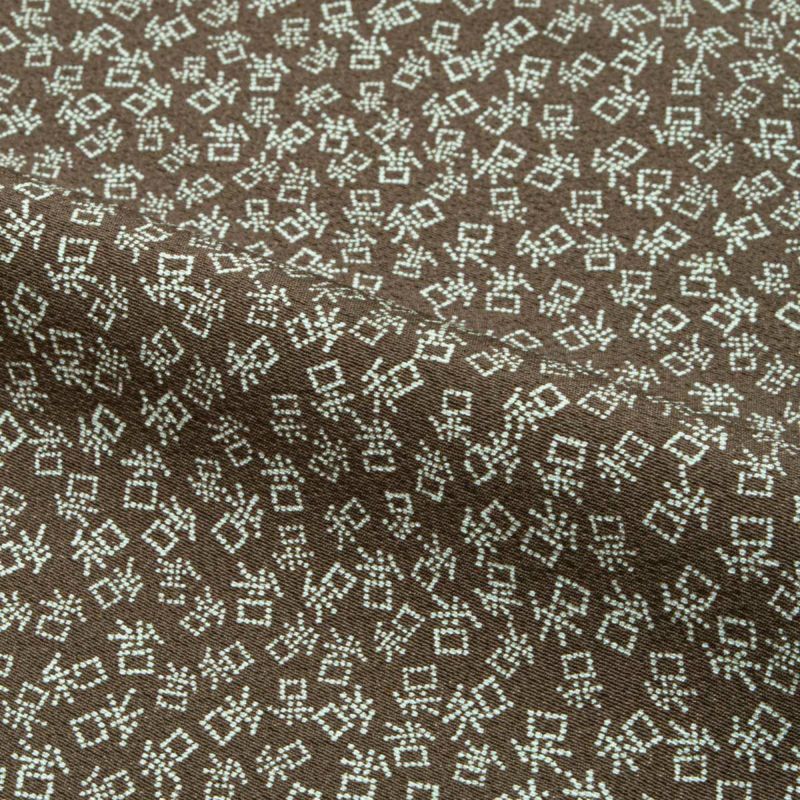 文様は「謂われ小紋」と呼ばれる縁起柄で、「和」という文字が小さく連なり、全体に散りばめられた意匠となっております。