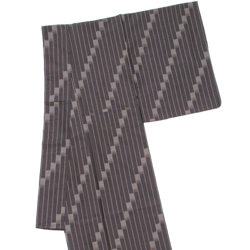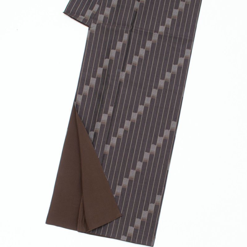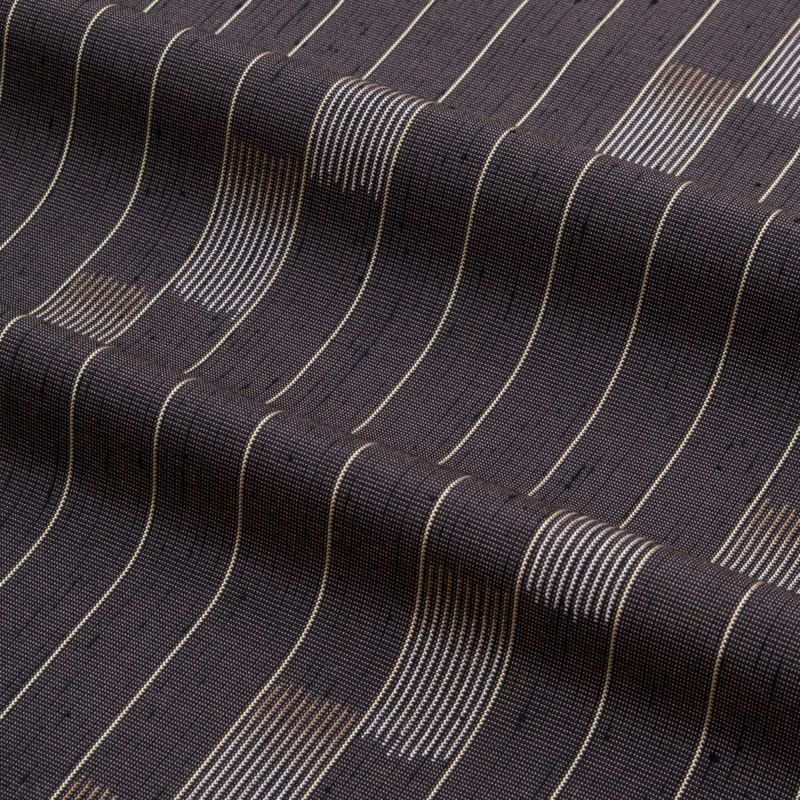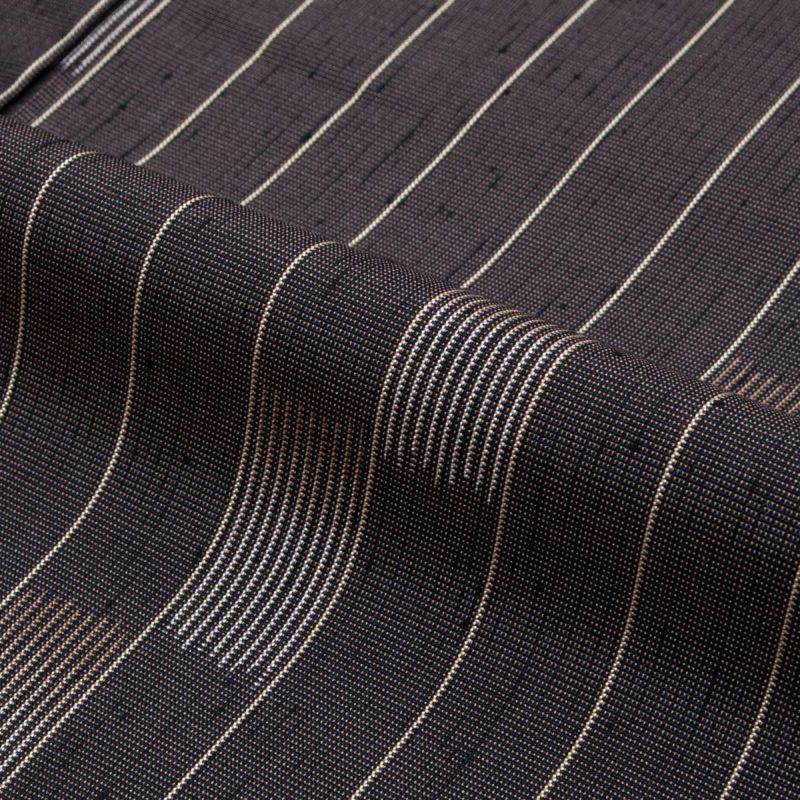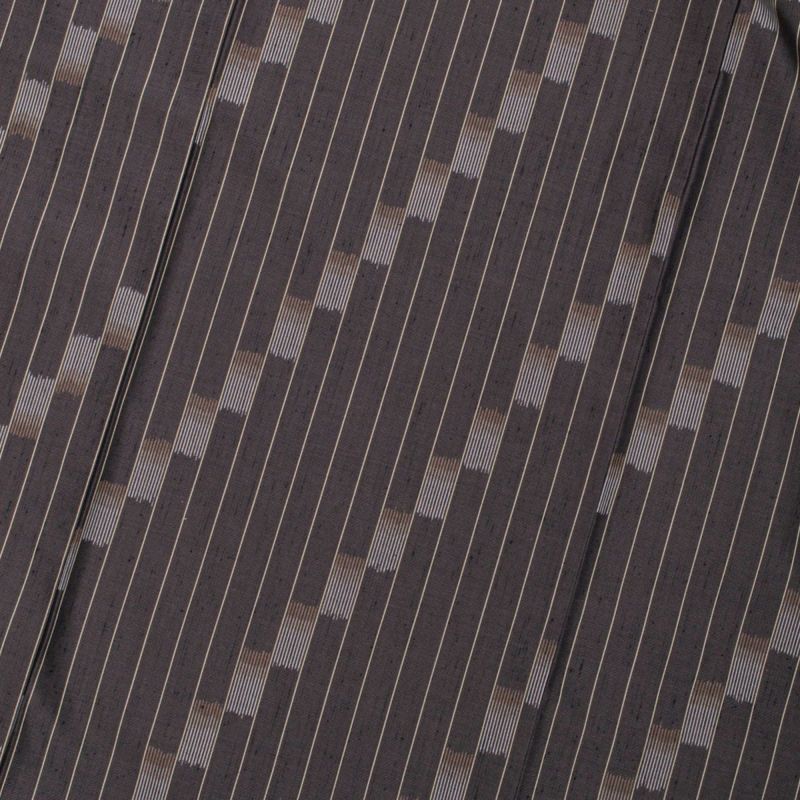 深みのある憲法色を基調に、細やかな縞と絣による格子が組み合わさった上質な紬です。