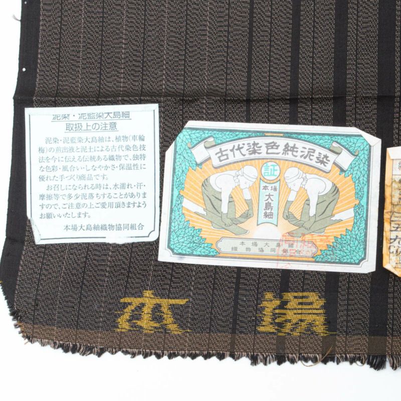 【美品】本場大島紬 泥染 縞大島 神楽岡錻斉 モダン縞柄 証紙付き 正絹 袷です。