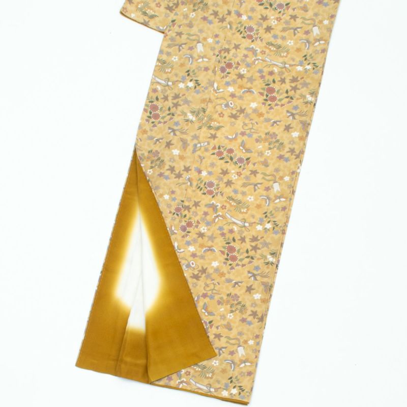 小紋 友禅 和楽器 鳳凰 胡蝶 榛色 正絹 袷です。
