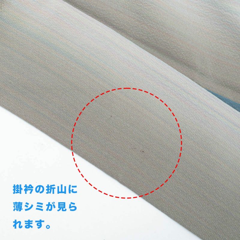 上前側の掛衿に、ごく小さな点状の薄いシミがございます(画像参照)。まったく目立たず、着用時には隠れる位置にございます。