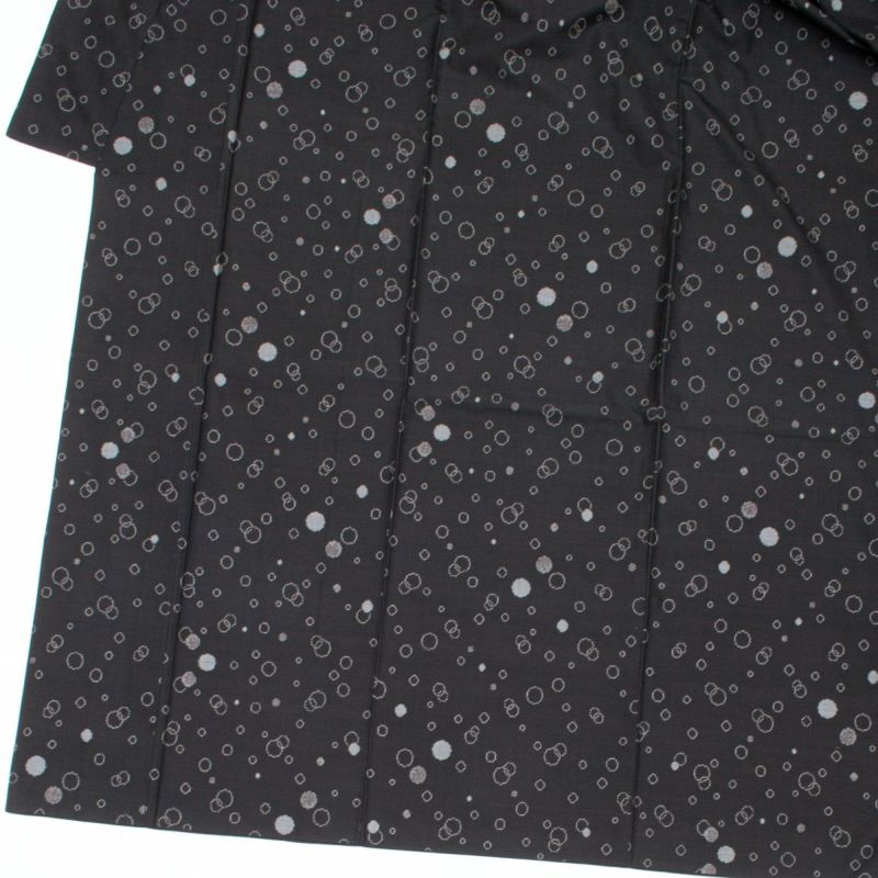 【東京ますいわ屋 誂品】本場大島紬 泥染め 絣 水玉散らし 鉄黒 正絹 袷です。