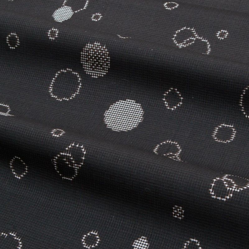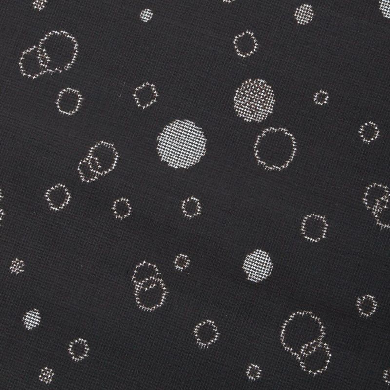 円の中の細かな絣模様や、輪郭がふわりと滲むように織り出された粒の表情が、シンプルなモチーフでありながら上質感を醸し出します。