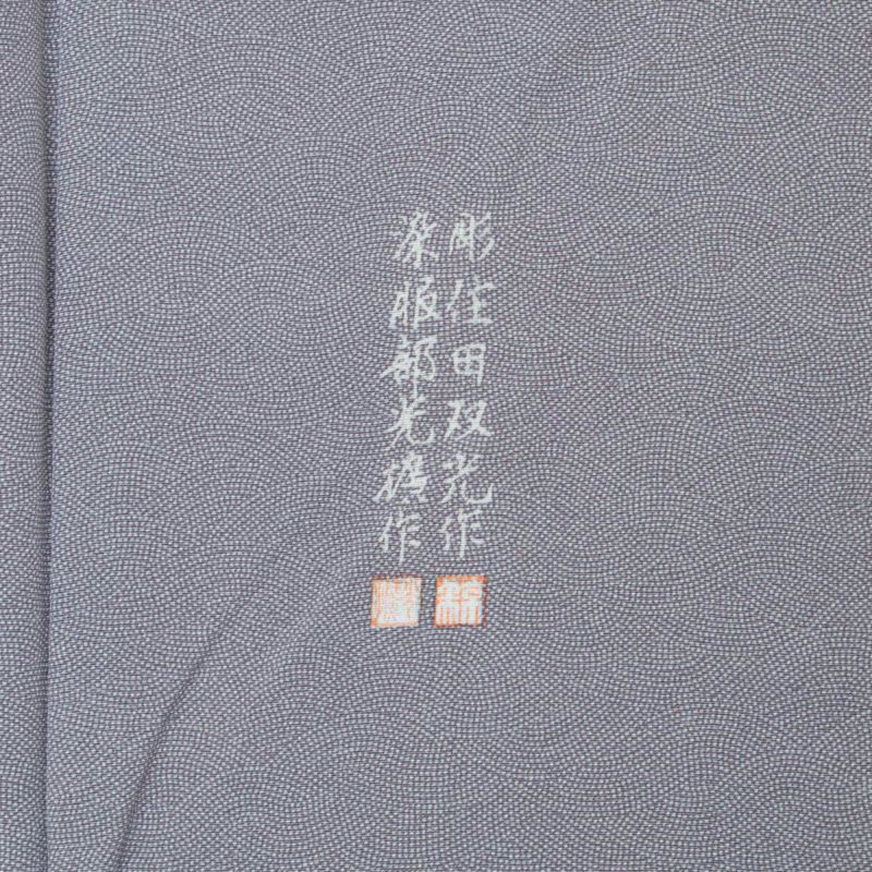 【美品】江戸小紋 草木染 極鮫 四海波 鳩羽鼠 灰青 伝統工芸士 服部光擴作 正絹 袷です。