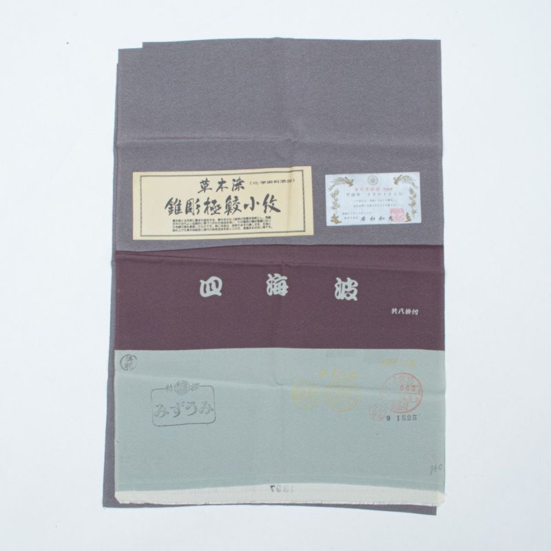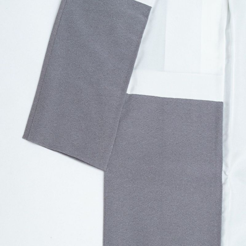 伝統工芸士・服部光擴氏による一点で、草木染ならではのやわらかな鳩羽鼠〜灰青の色合いが肌に溶け込むように馴染みます。