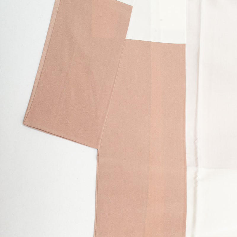 やわらかな灰桜の色合いが上品に広がる、真綿紬の無地着物です。