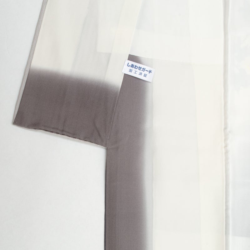 やわらかな白から消炭色へと移ろう暈しが美しい、静謐な趣の小紋です。