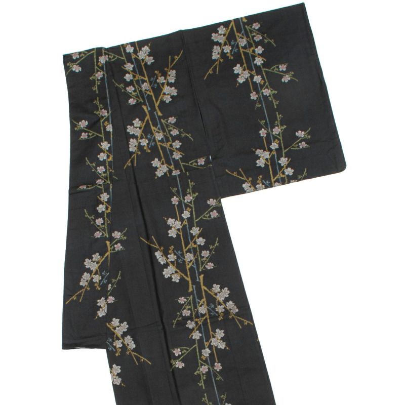 縦に流れるように配置された桜の枝が、すっきりとした印象を与え、着姿を美しく引き立ててくれます。