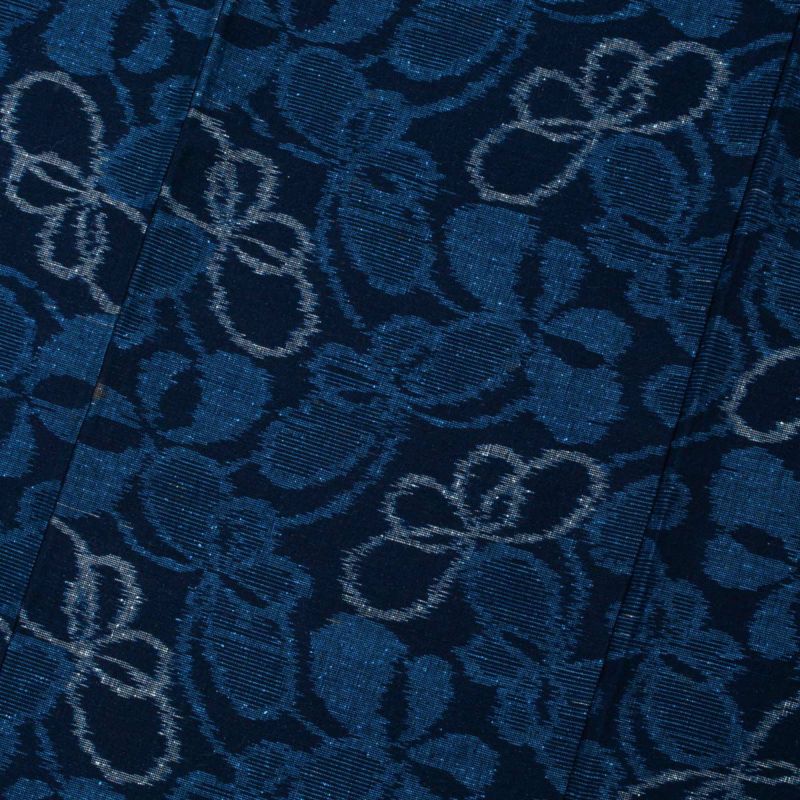 綿紬 久留米絣 花胡蝶 藍色 木綿 単衣です。