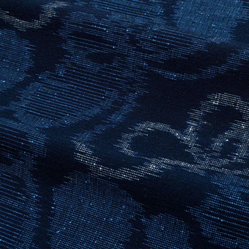 大胆なモチーフながら、藍一色でまとめられているため派手になりすぎず、落ち着いた印象を与えてくれます。