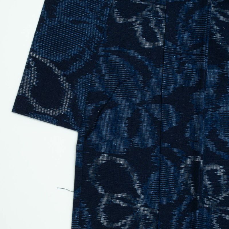 久留米絣の伝統的な技法で織り上げられた、単衣仕立ての木綿着物です。