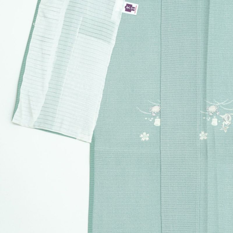 遊び心のあるデザインながら、青磁という上品な色合いが全体を引き締め、品のある着姿を演出します。