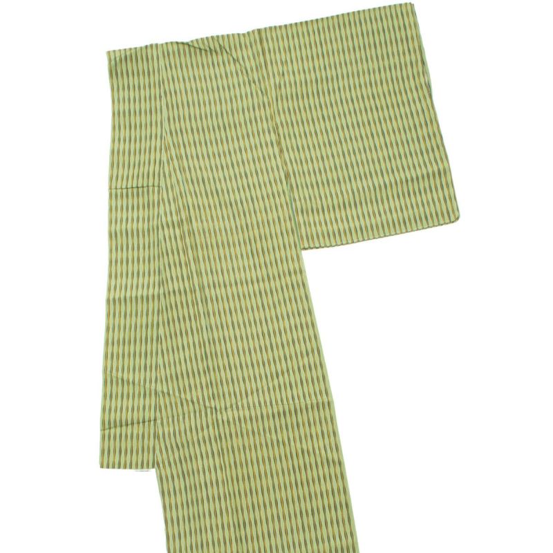 【単衣】小紋 友禅 立涌文 黄緑 緑 黄色 正絹です。