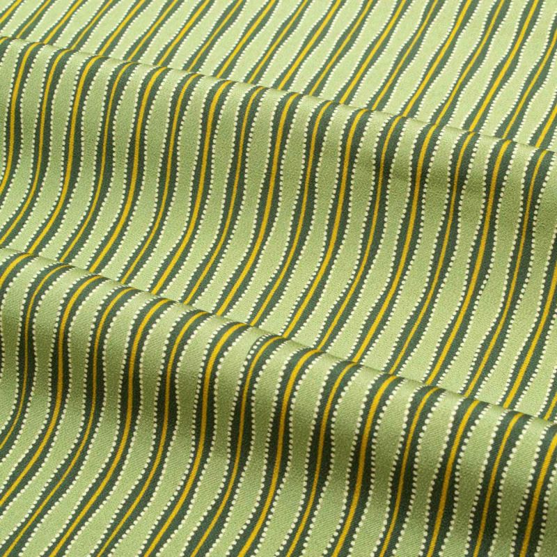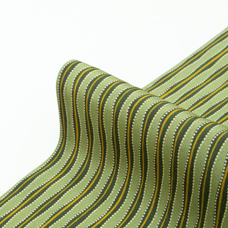 爽やかな黄緑を基調に、緑と黄色を組み合わせたモダンな色使いが印象的な単衣の小紋です。