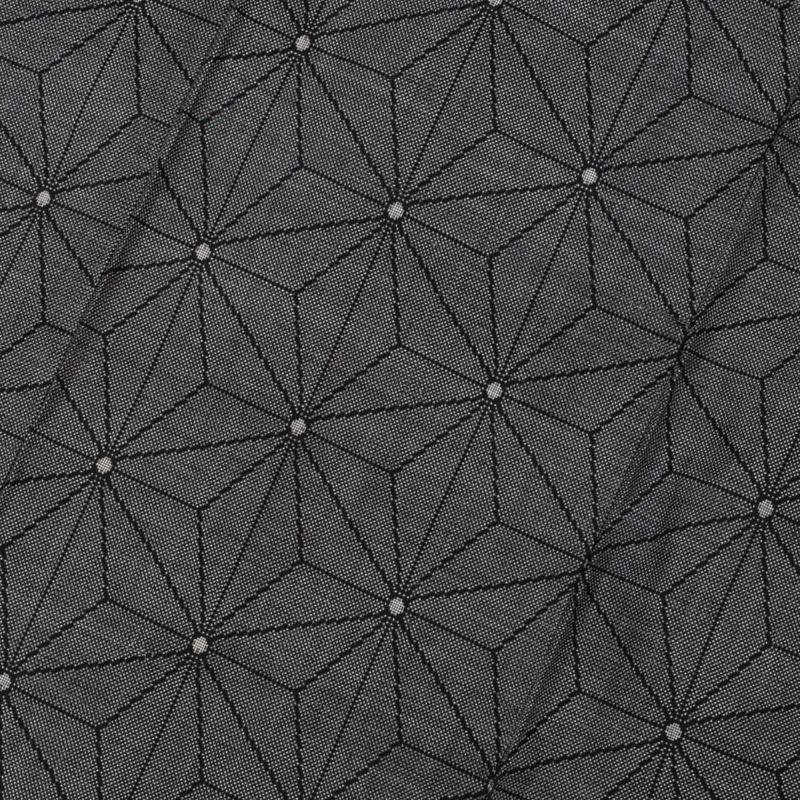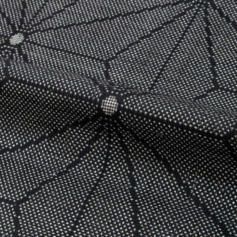 地色は深い黒地に白の絣が際立ち、遠目にはシンプルながらも、近づくと驚くほど精巧な柄行きが目を引きます。
