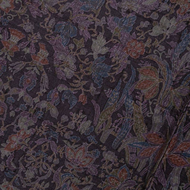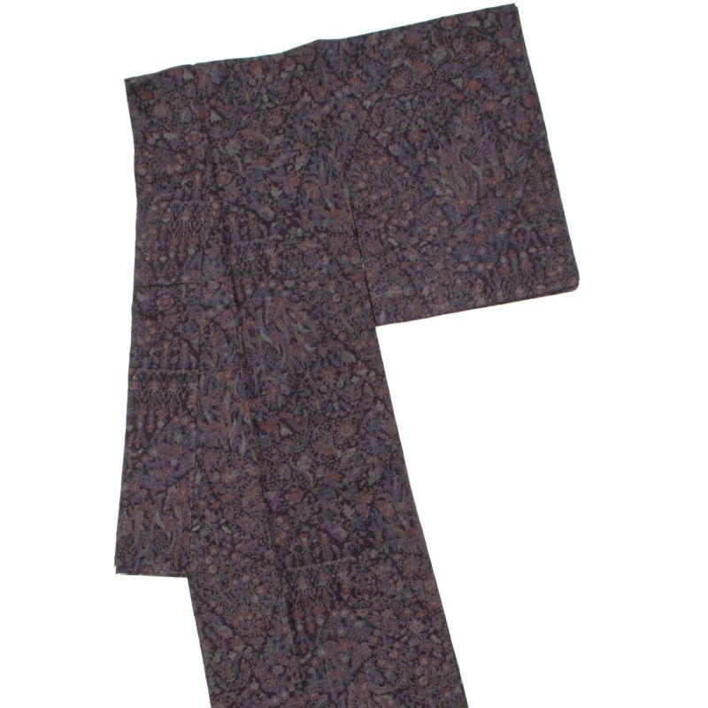 【単衣】紬 江戸更紗 ボタニカル文様 烏羽色 濃鼠 正絹です。